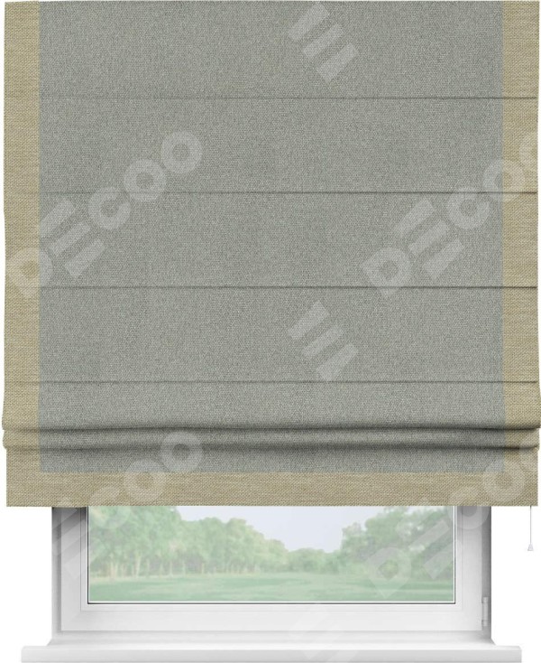 Римская штора «Кортин» для проема, лён димаут серый с кантом Виктория