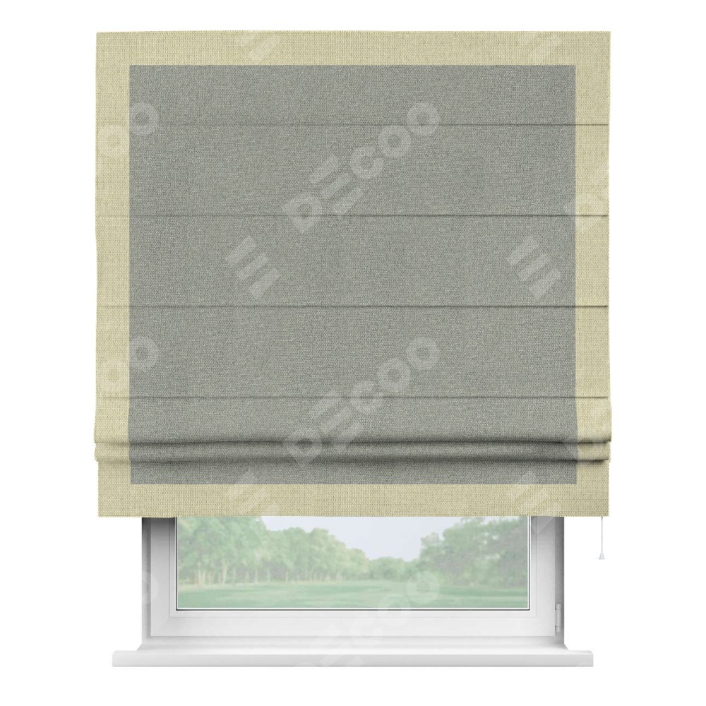 Римская штора «Кортин» для проема, лён димаут серый с кантом Чесс