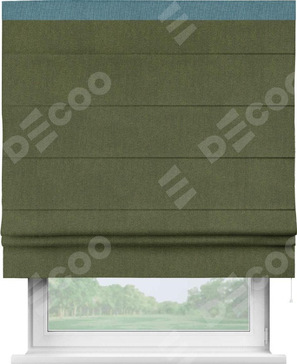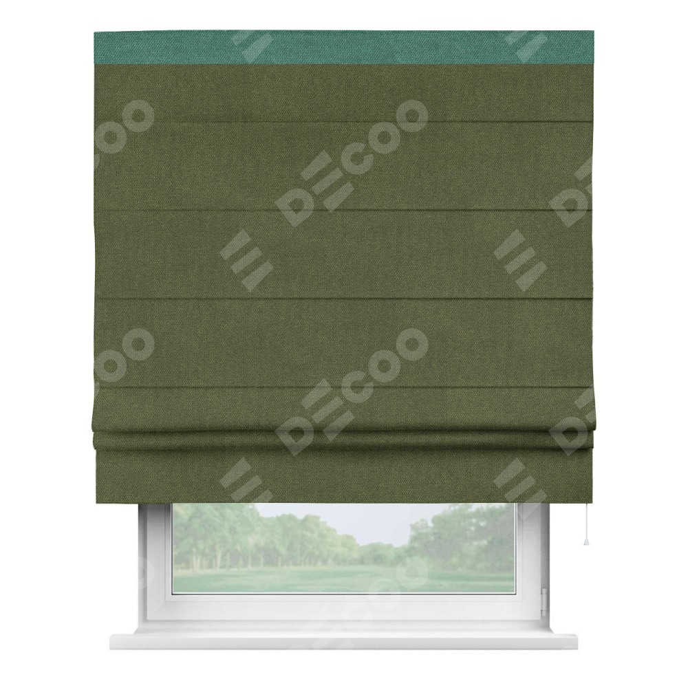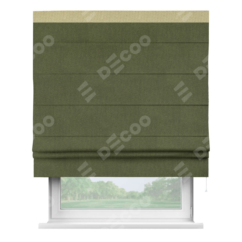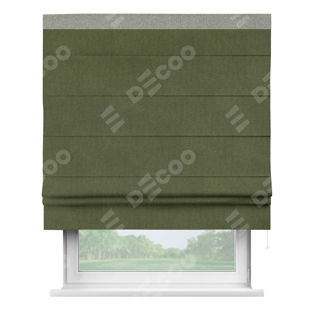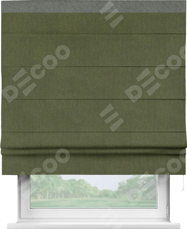 Римская штора «Кортин» для проема, лён димаут салатовый с кантом Кинг