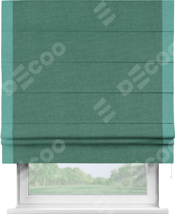 Римская штора «Кортин» для проема, лён димаут светло-бирюзовый с кантом Стрим Дуо