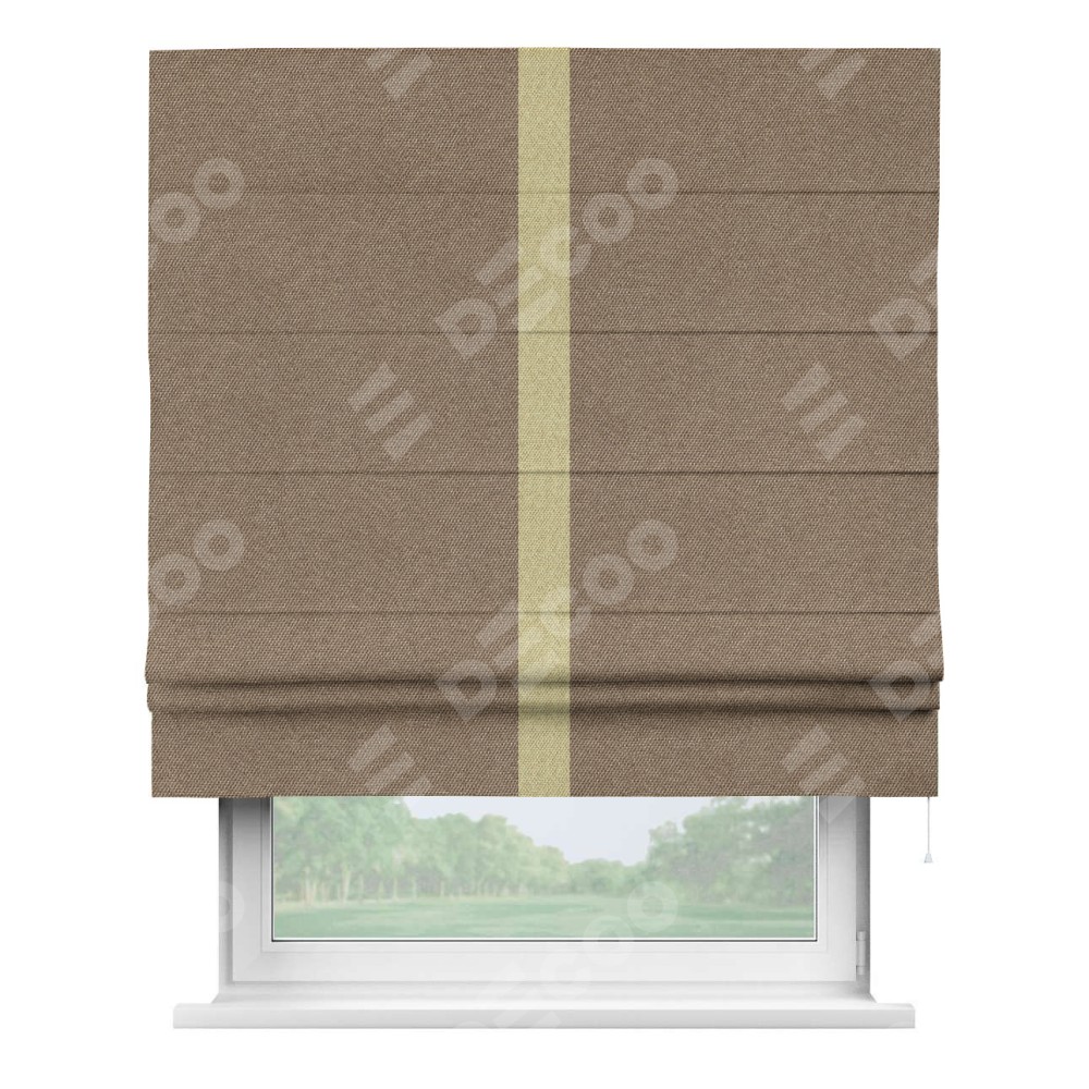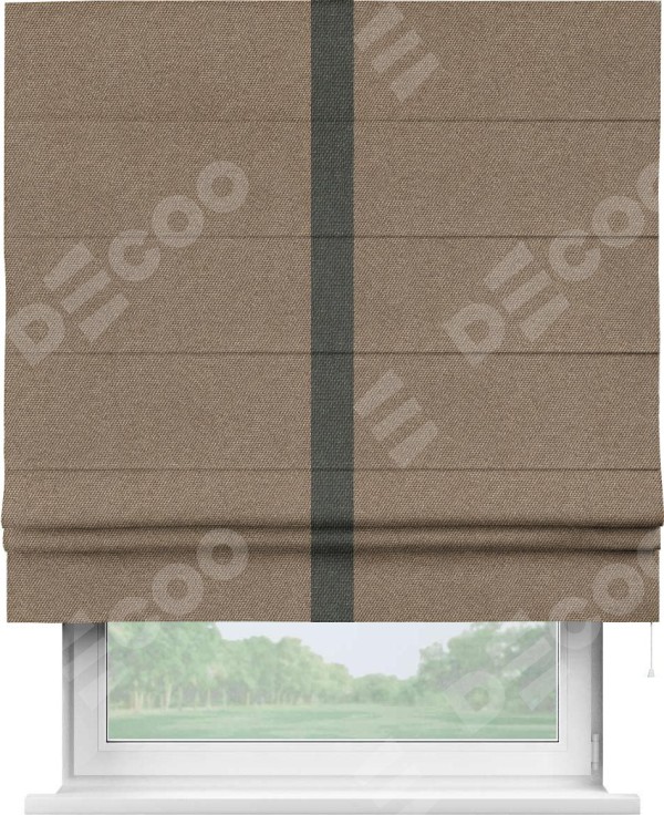 Римская штора «Кортин» для проема, лён димаут коричневый с кантом Хайвэй