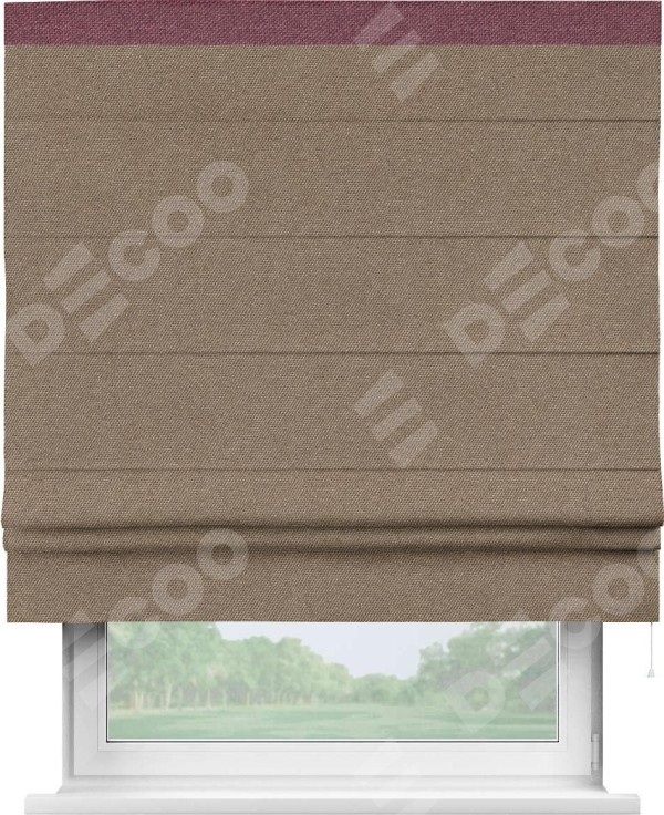 Римская штора «Кортин» для проема, лён димаут коричневый с кантом Кинг