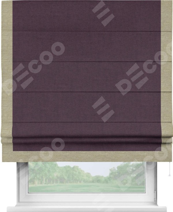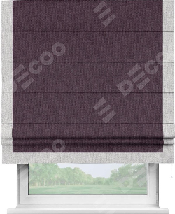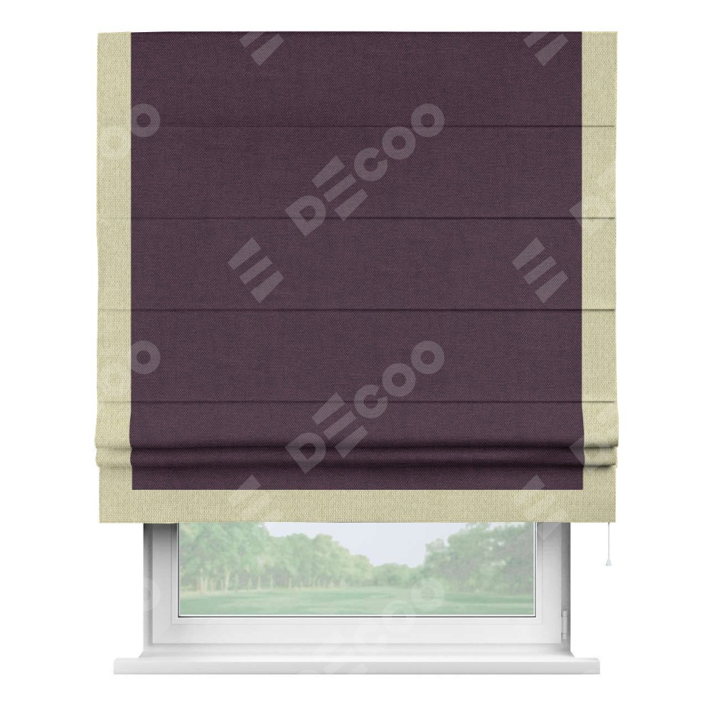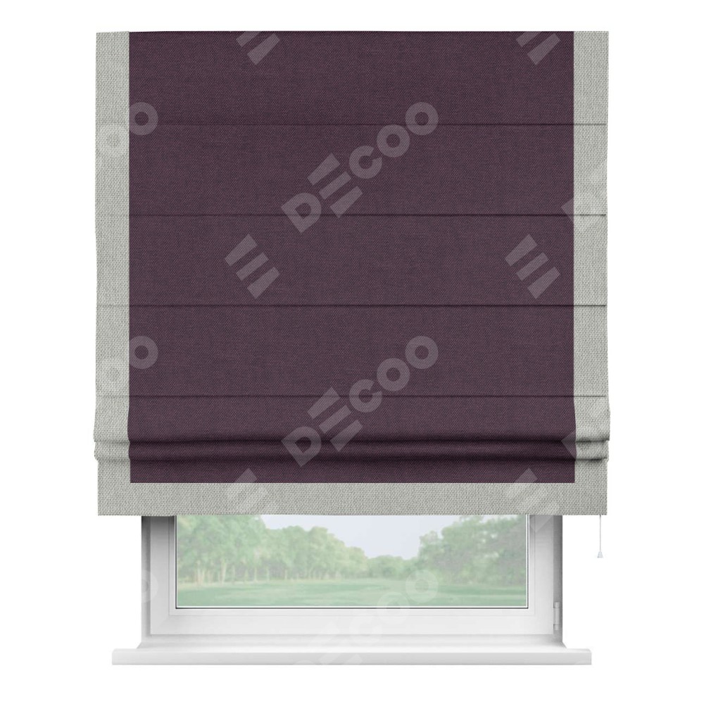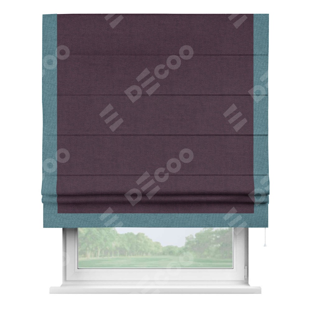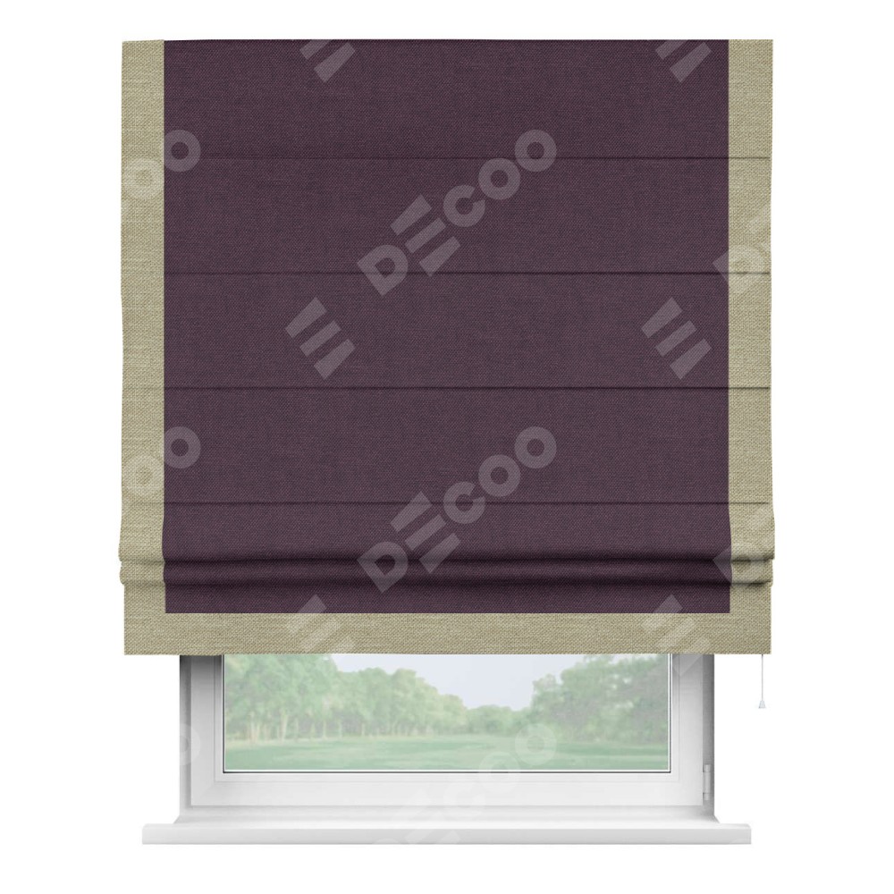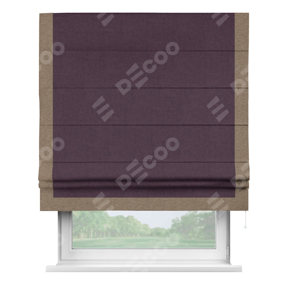 Римская штора «Кортин» для проема, лён димаут фиолетовый с кантом Виктория