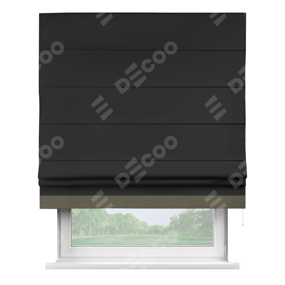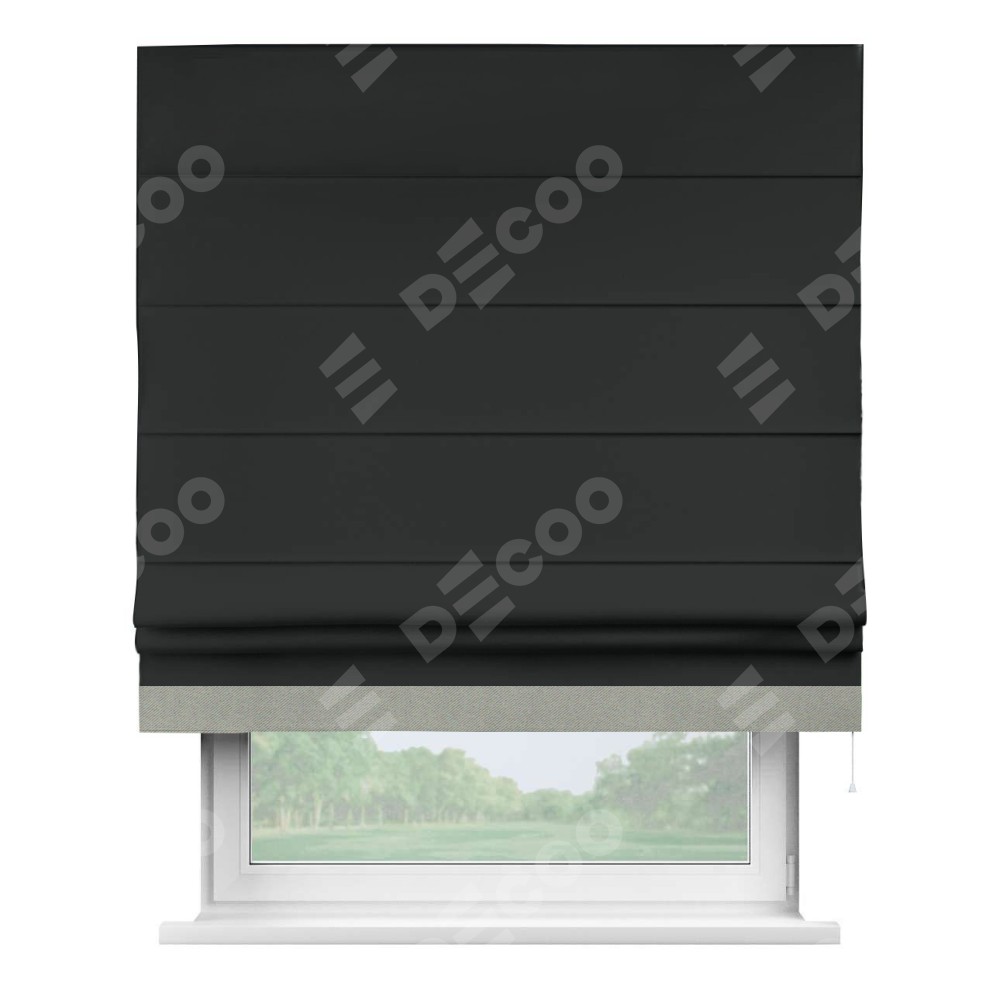 Римская штора «Кортин» для проема, блэкаут однотонный черный с кантом Джестер