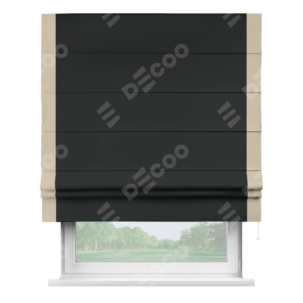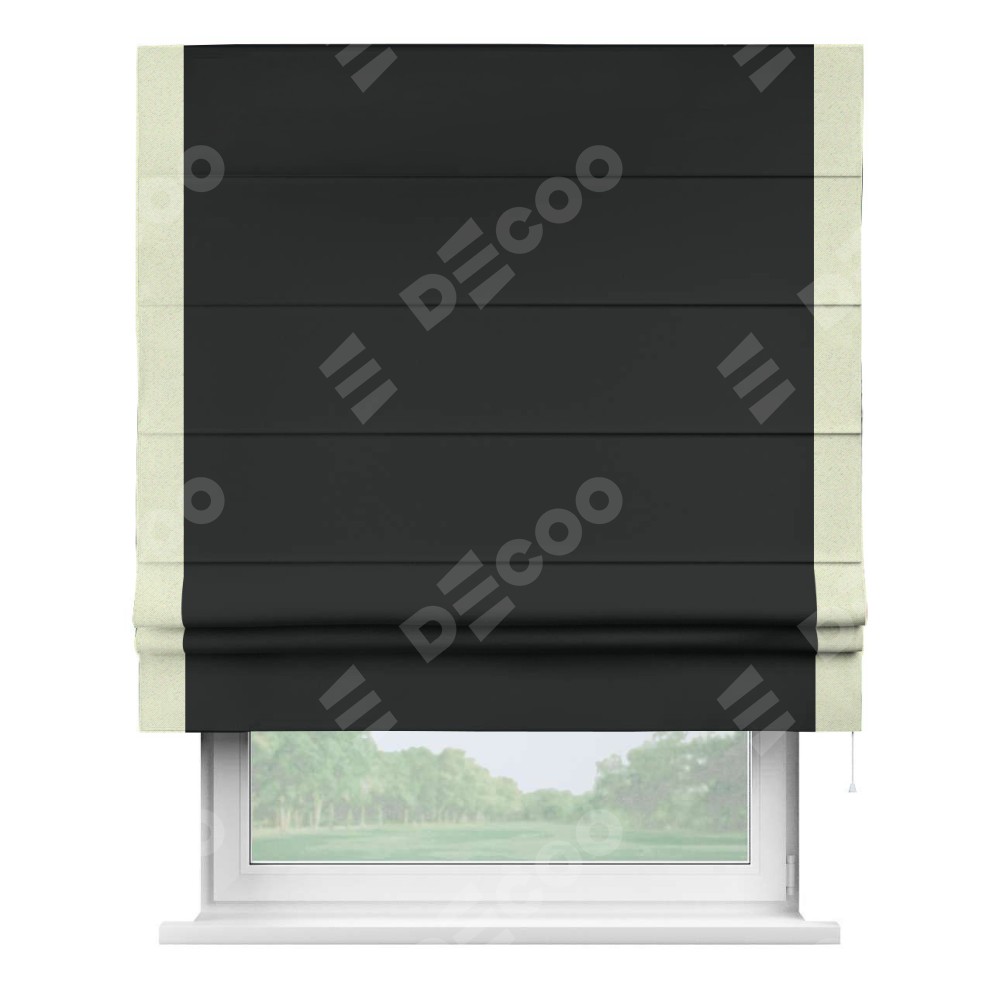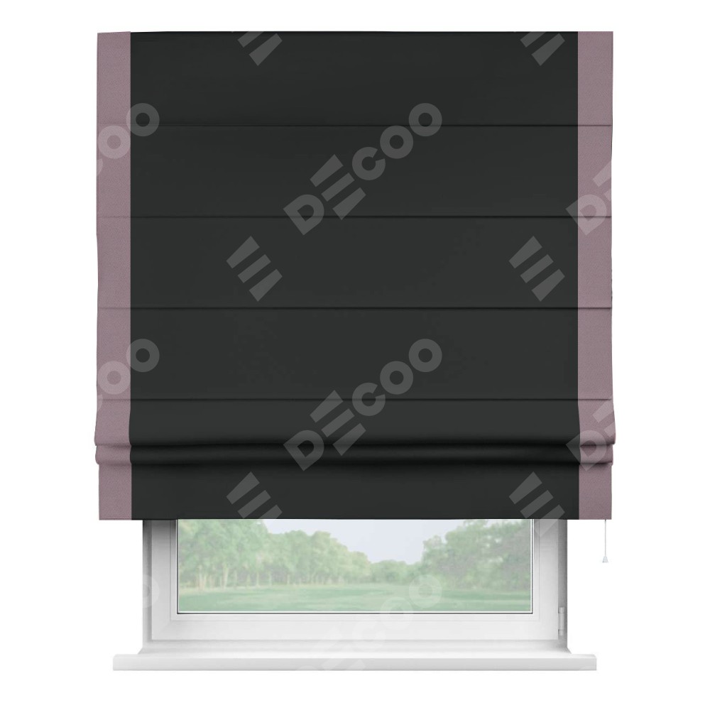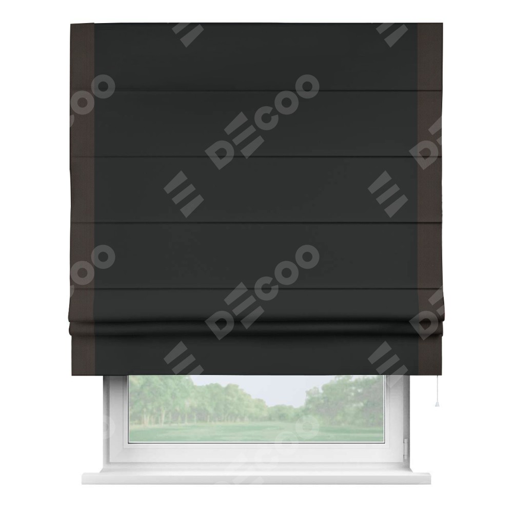 Римская штора «Кортин» для проема, блэкаут однотонный черный с кантом Стрим Дуо