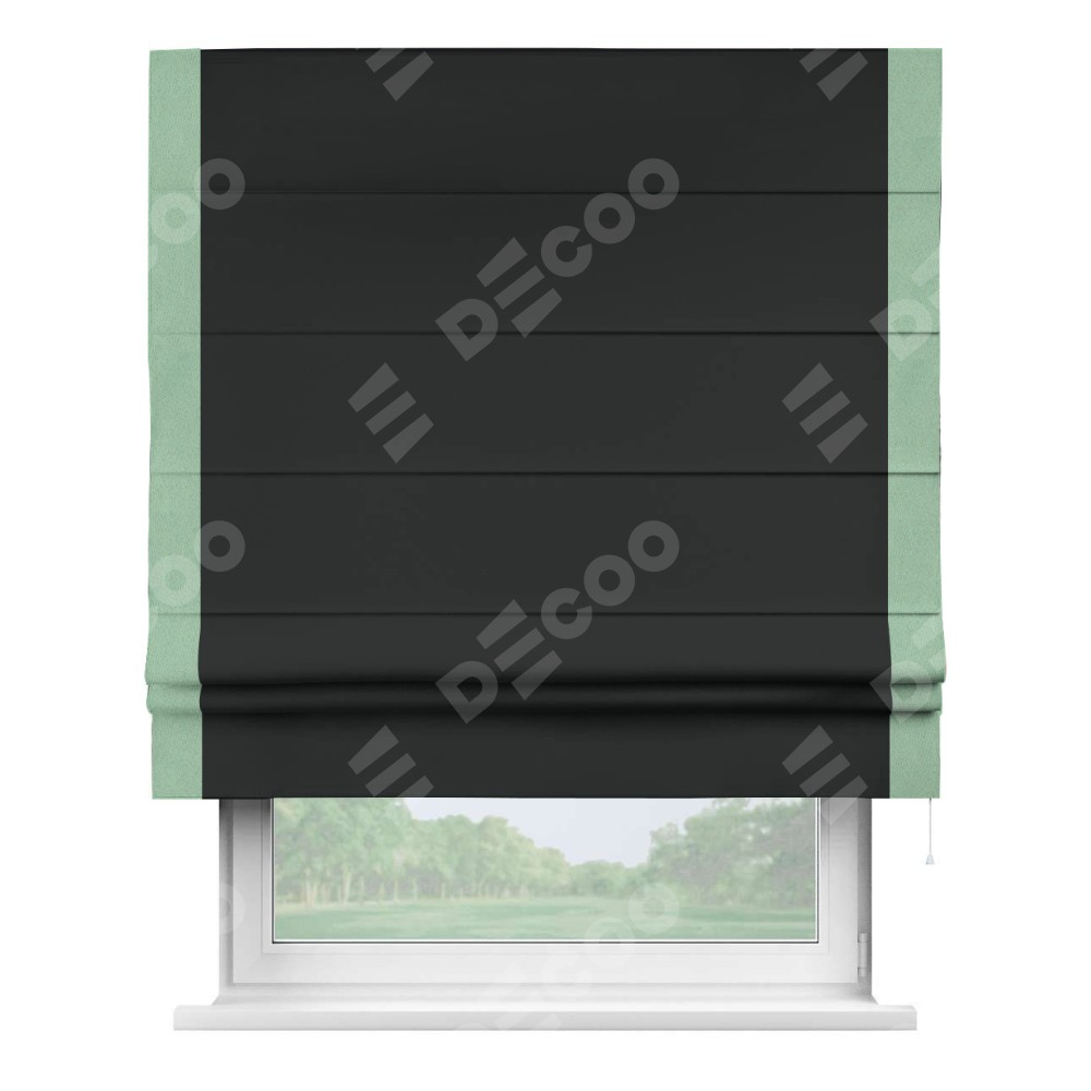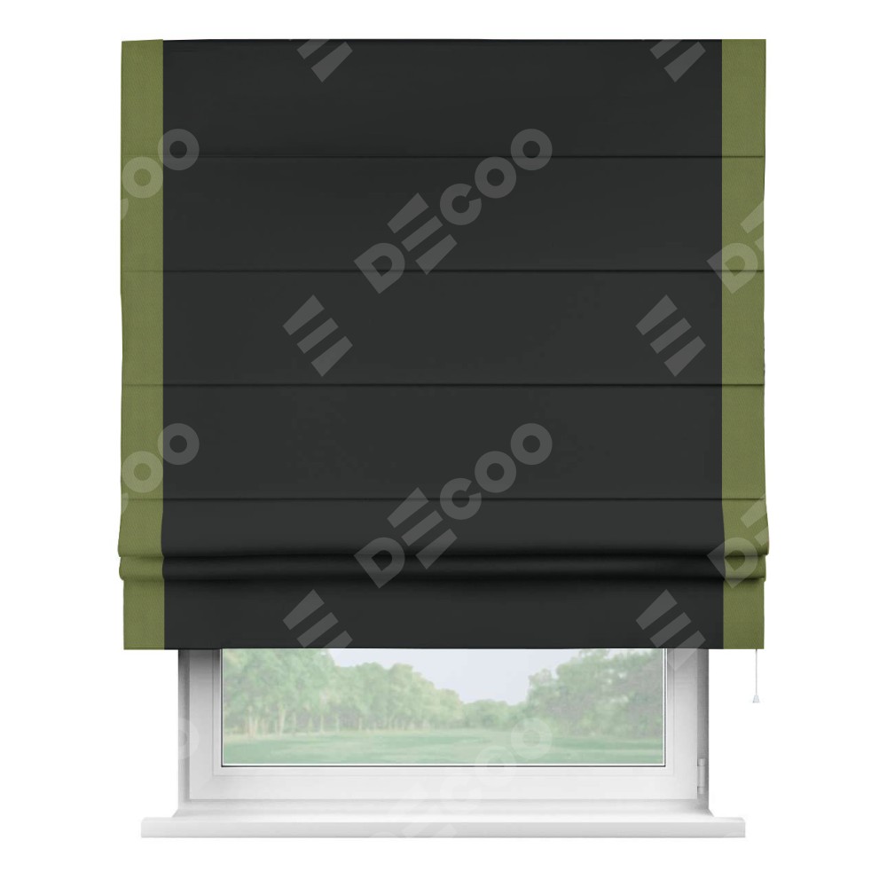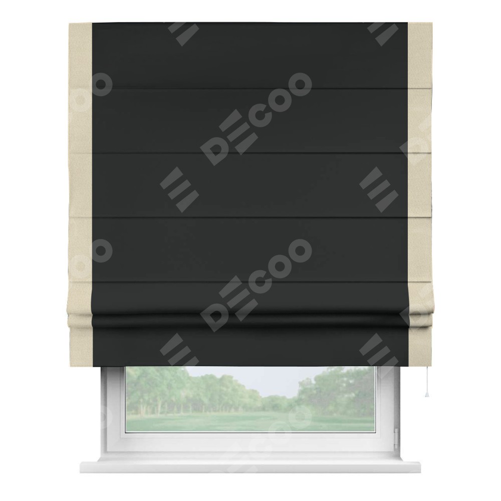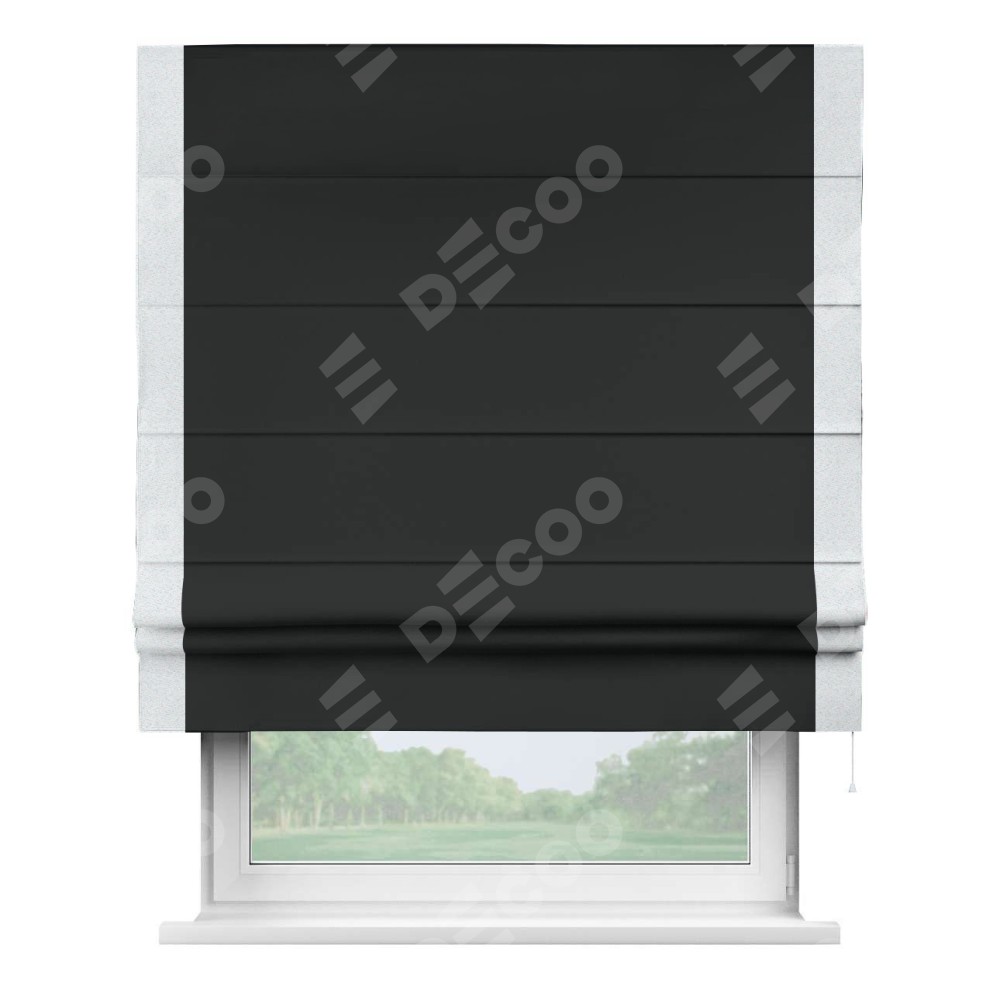 Римская штора «Кортин» для проема, блэкаут однотонный черный с кантом Стрим Дуо