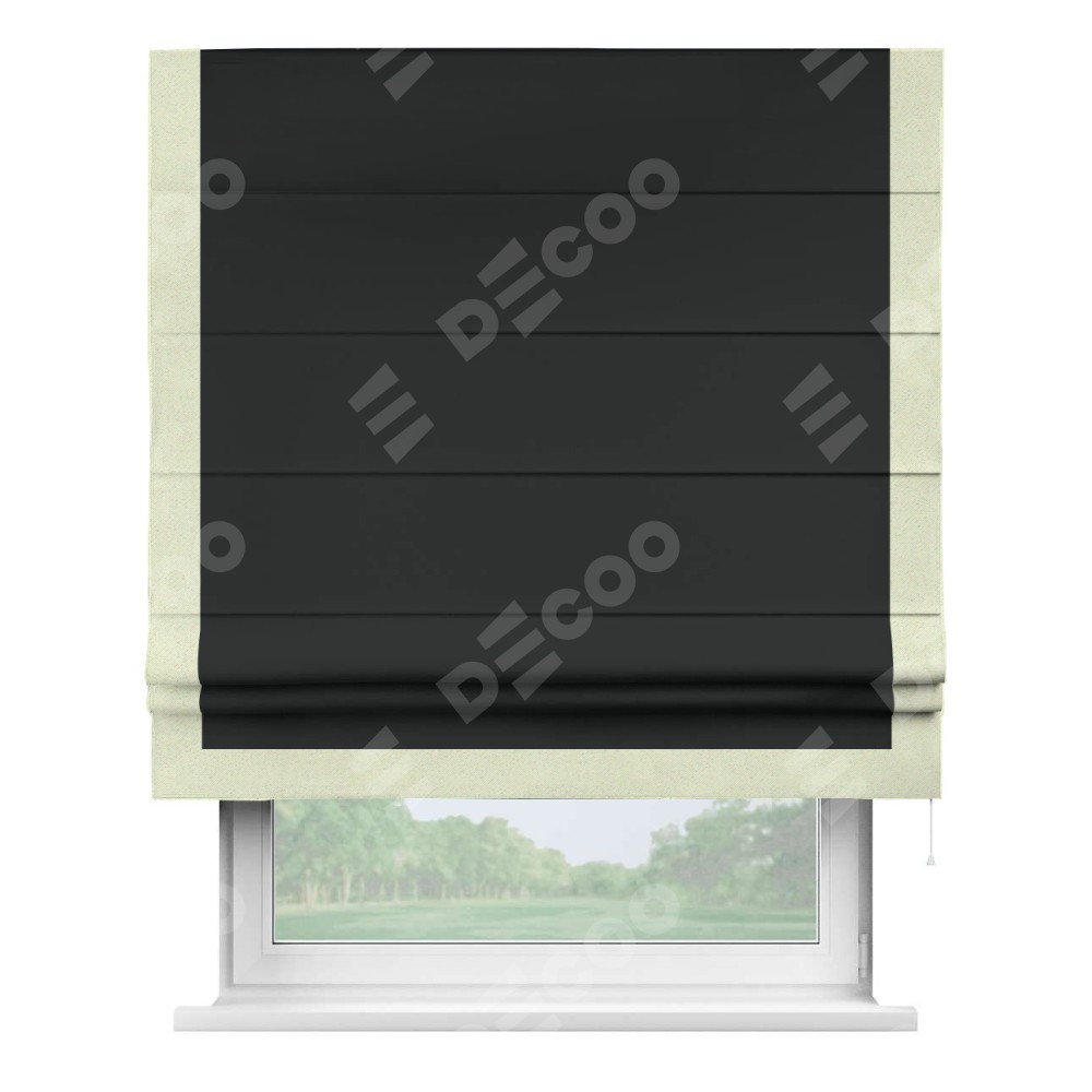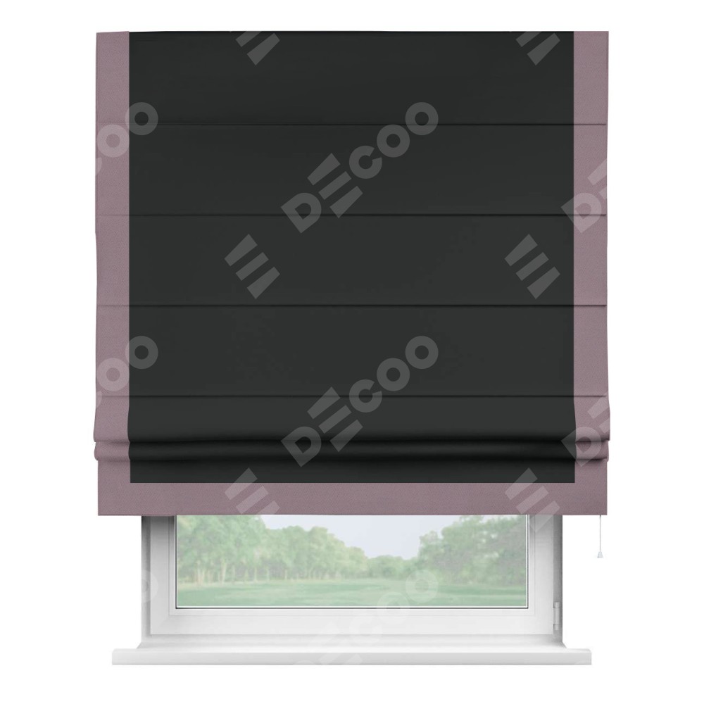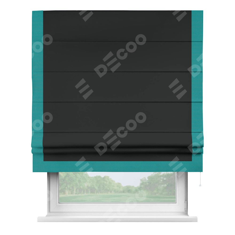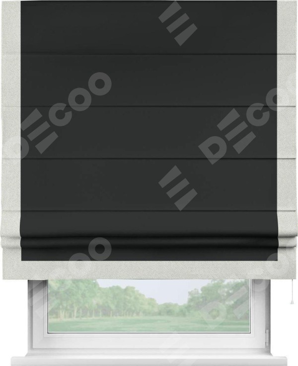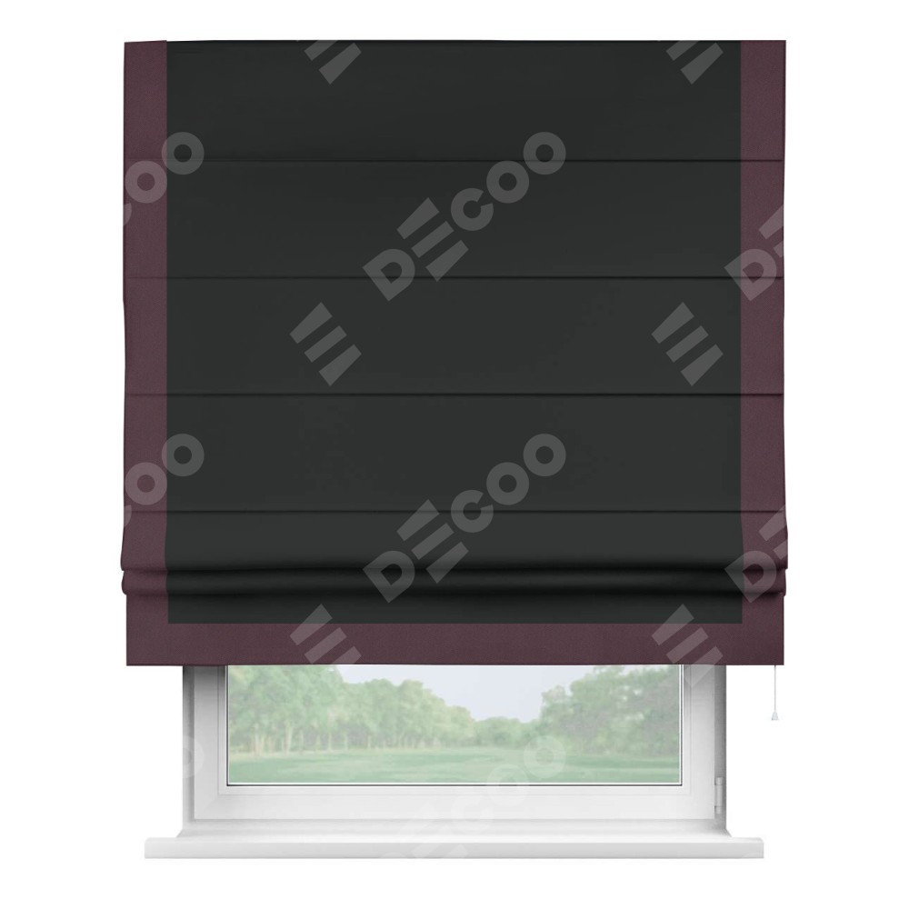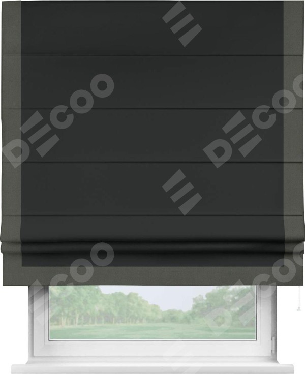 Римская штора «Кортин» для проема, блэкаут однотонный черный с кантом Виктория