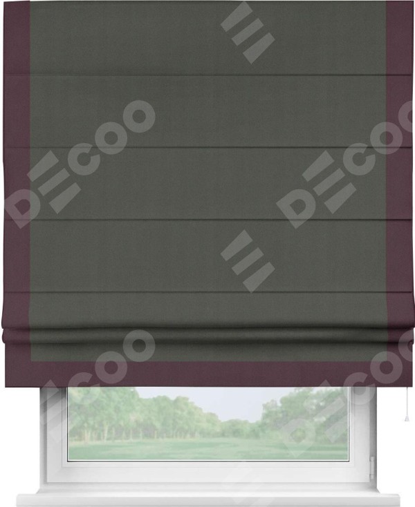 Римская штора «Кортин» для проема, блэкаут однотонный дымчато-серый с кантом Виктория