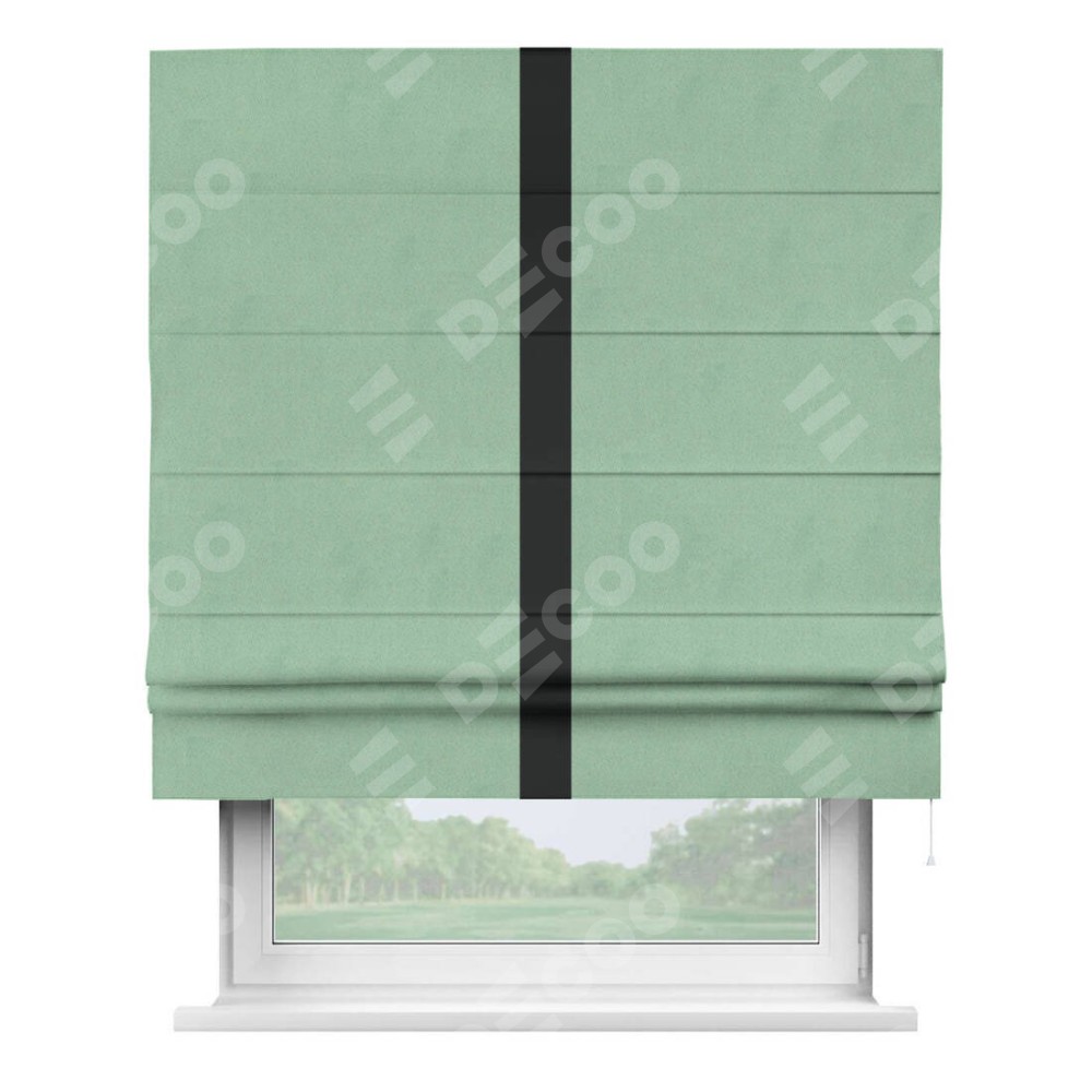 Римская штора «Кортин» для проема, блэкаут однотонный ментоловый с кантом Хайвэй