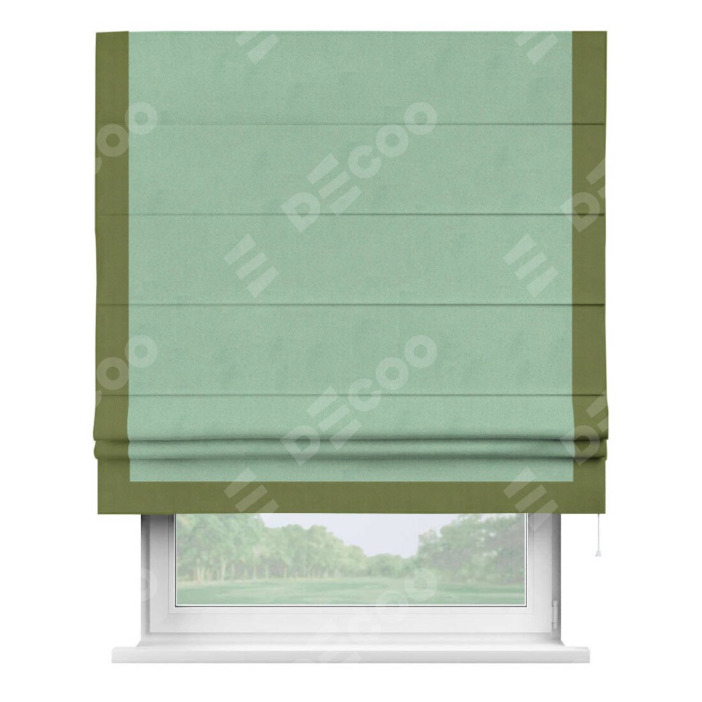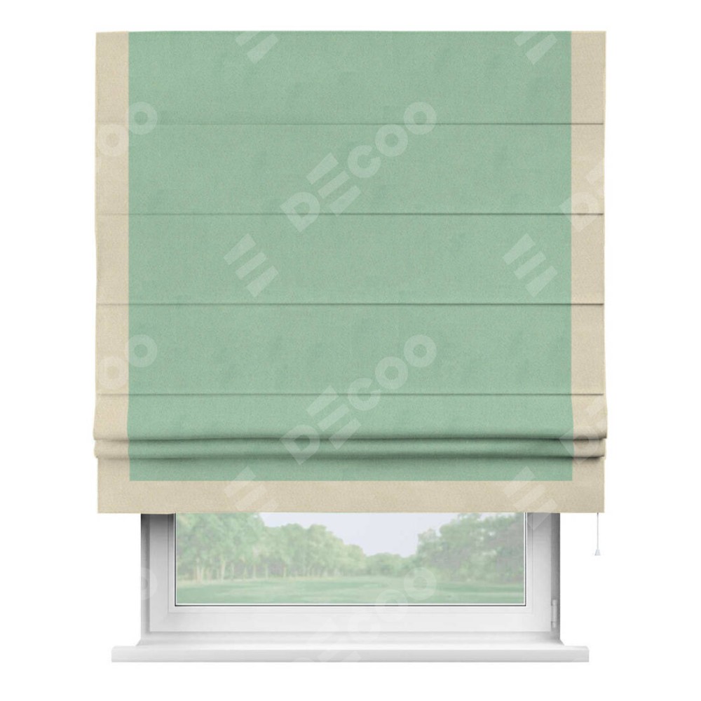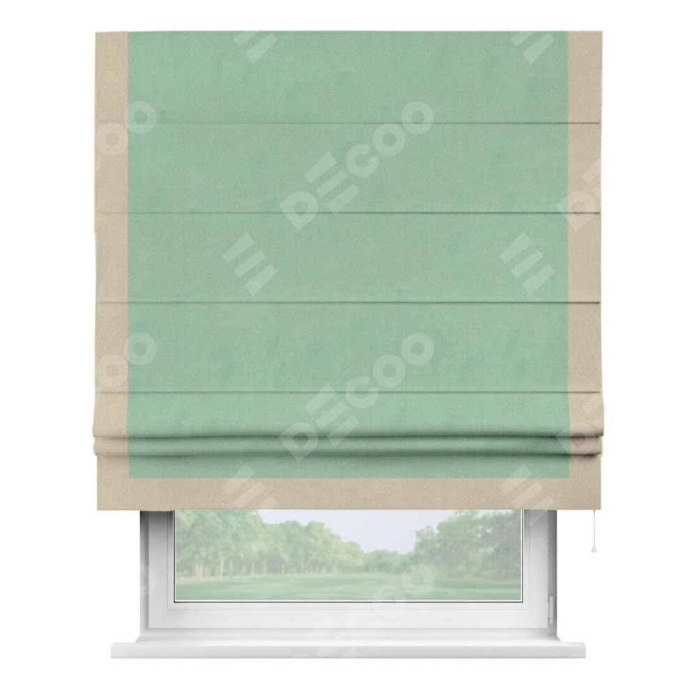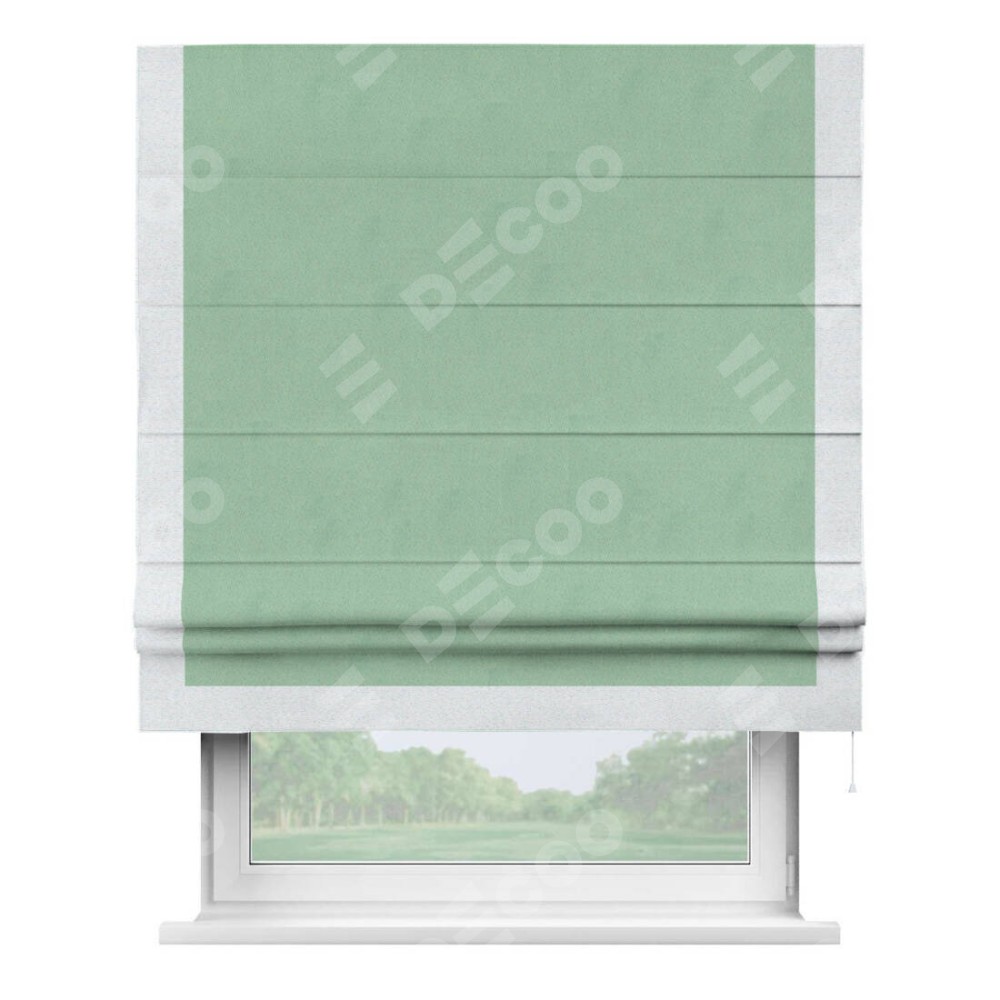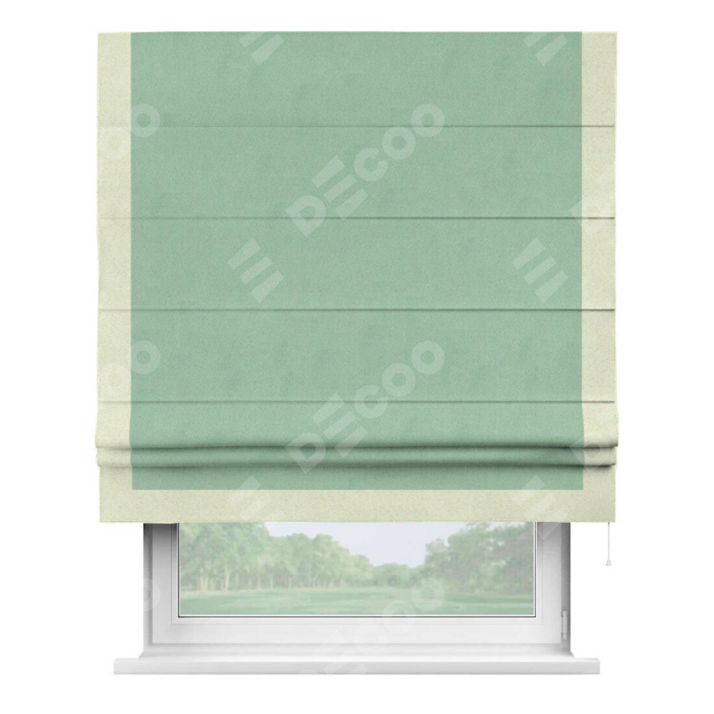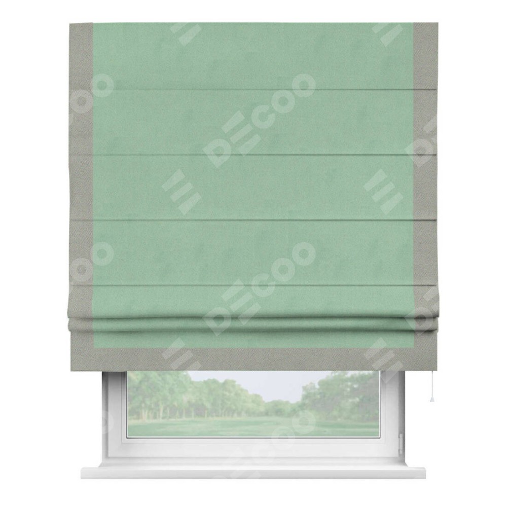 Римская штора «Кортин» для проема, блэкаут однотонный ментоловый с кантом Виктория