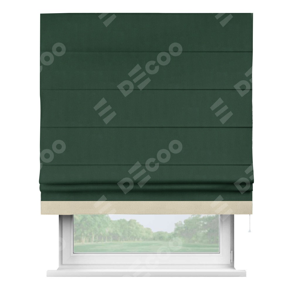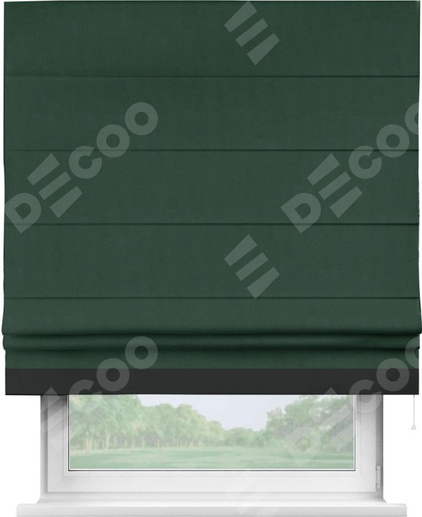 Римская штора «Кортин» для проема, блэкаут однотонный зелёный с кантом Джестер