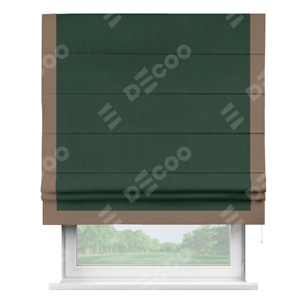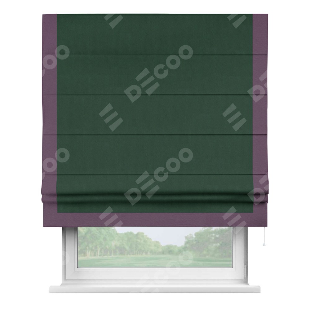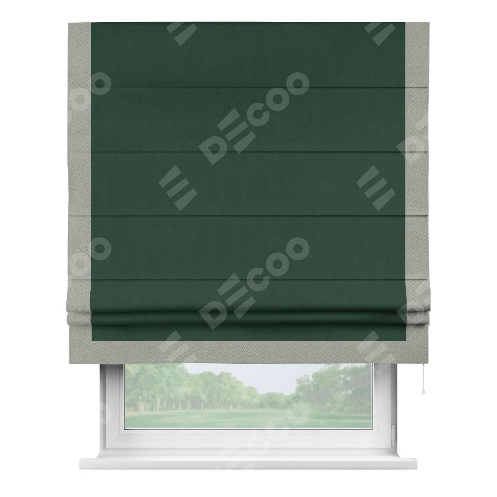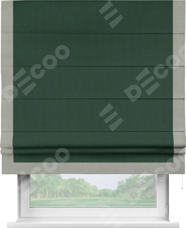 Римская штора «Кортин» для проема, блэкаут однотонный зелёный с кантом Виктория