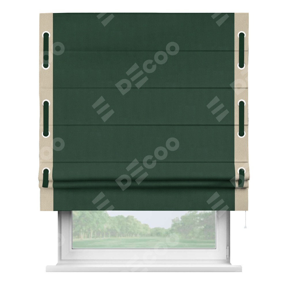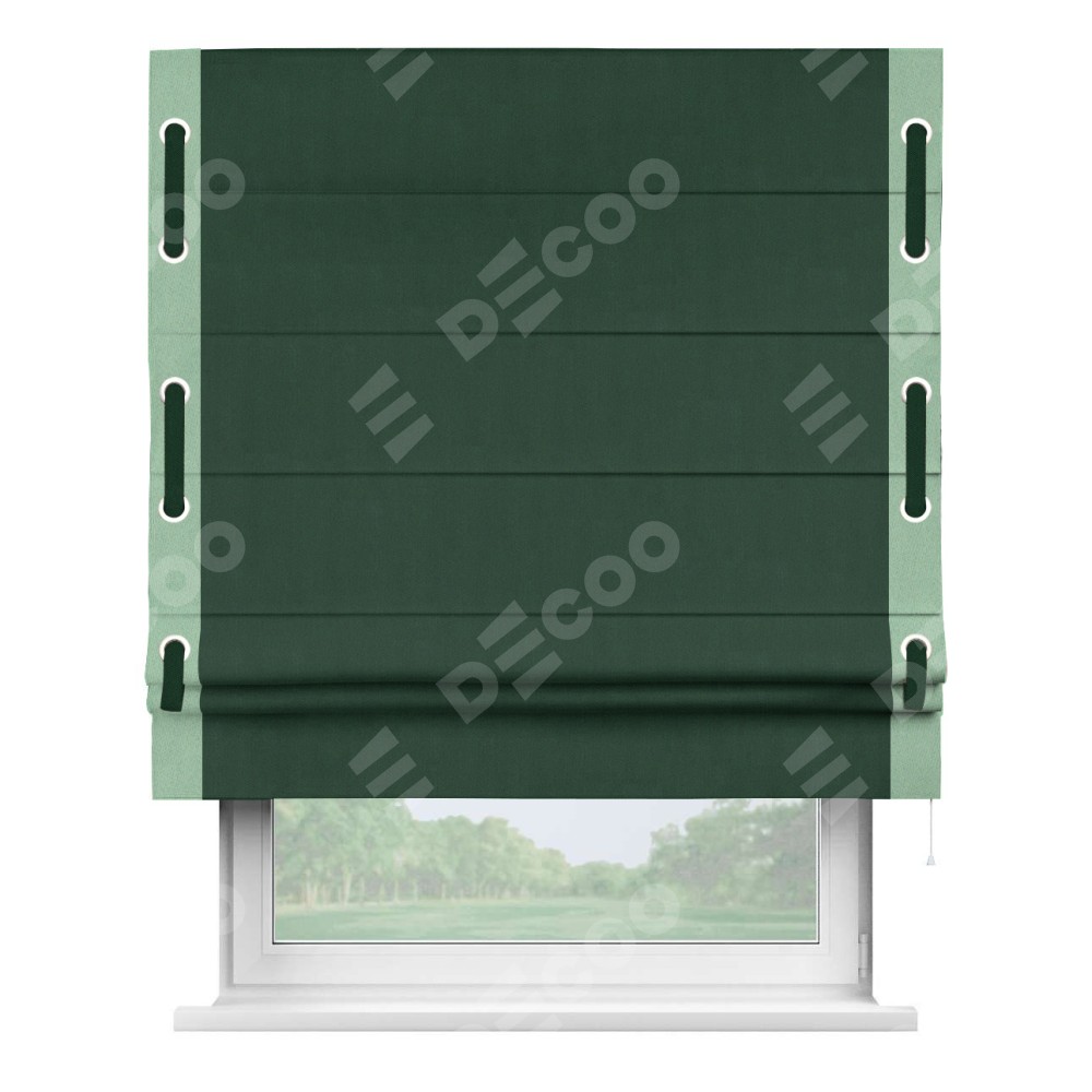 Римская штора «Кортин» для проема, блэкаут однотонный зелёный с кантом Стрим Дуо (люверсы с пояском)