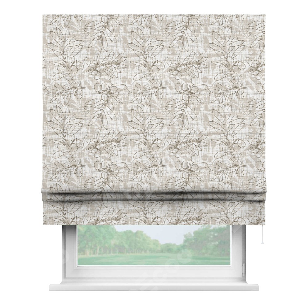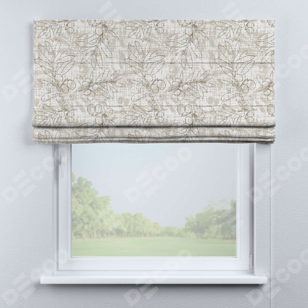 Классическая римская штора производителя «Cortin», пошита из ткани блэкаут с нанесением сублимационной печати «Ветви оливы». Имеет универсальный механизм и подходит для монтажа: на потолок, на стену и в нишу.