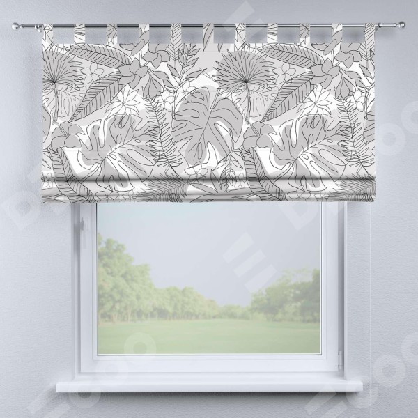 Римская штора производителя «Cortin», используется для проёма, пошита из ткани блэкаут с нанесением сублимационной печати «Тропический лес». Данная модель пошита на петлях, комплектуется на выбор круглым карнизом и подходит для монтажа на стену. Римская штора на петлях имеет простую систему регулировки высоты, отличительным преимуществом данной модели является простой способ монтажа. Достаточно повесить ее на трубу и штора готова!