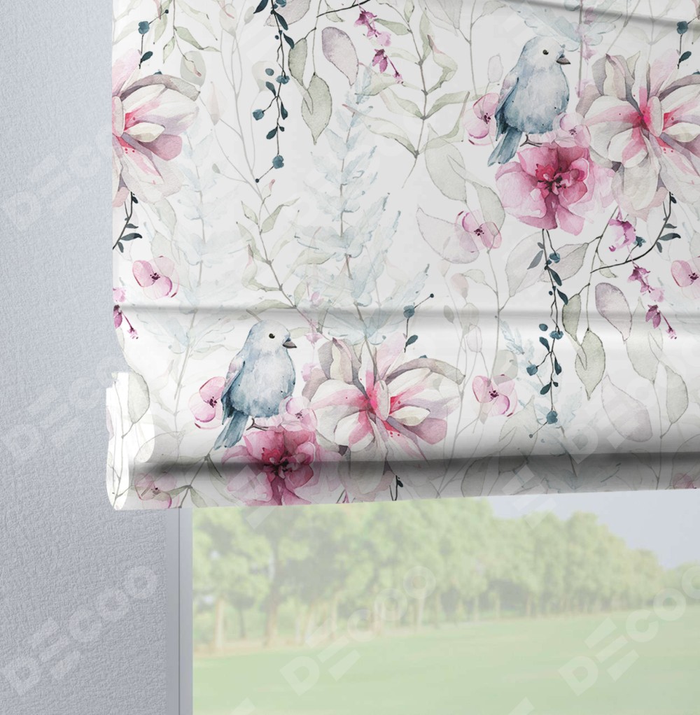 Римская штора производителя «Cortin», используется для проёма, пошита из ткани блэкаут с нанесением сублимационной печати «Мелодия цветов». Данная модель пошита на петлях, комплектуется на выбор круглым карнизом и подходит для монтажа на стену. Римская штора на петлях имеет простую систему регулировки высоты, отличительным преимуществом данной модели является простой способ монтажа. Достаточно повесить ее на трубу и штора готова!