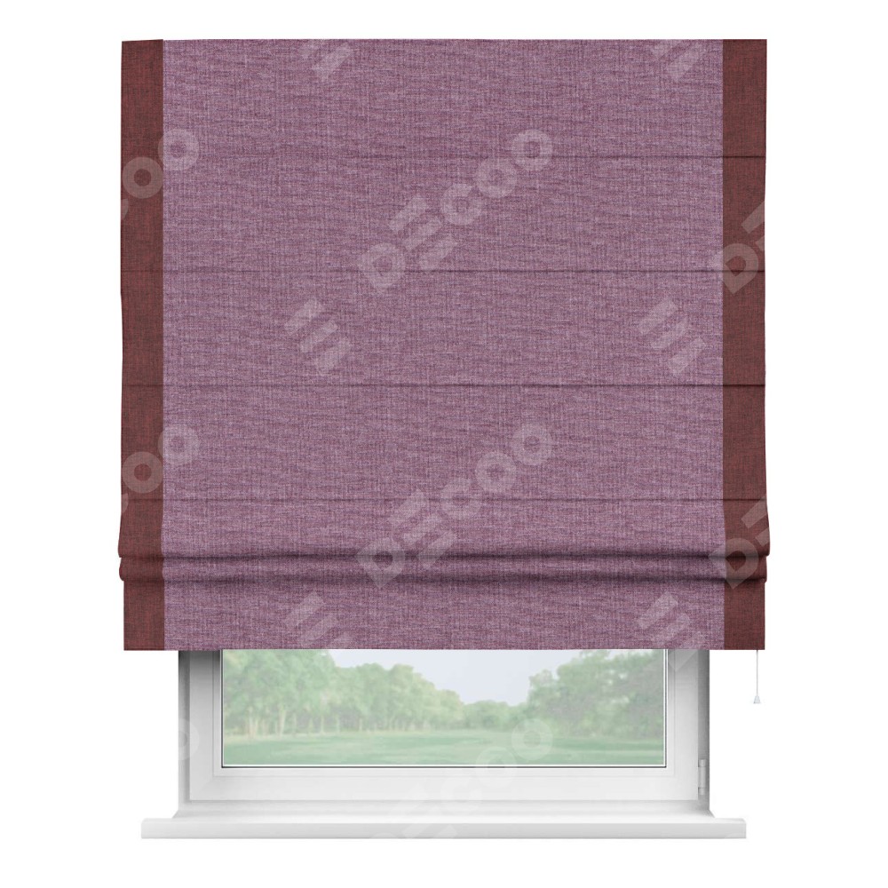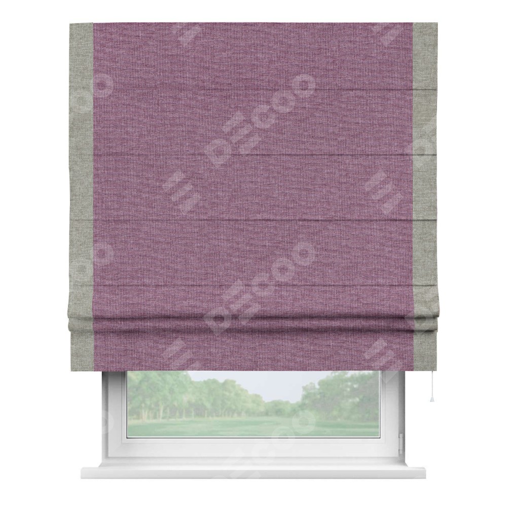 Римская штора производителя «Cortin», используется для проёма, пошита из ткани лён кашемир розовая пудра, артикул 21620. Отделка шторы кантом «Стрим Дуо», ткань для канта используется из льна разной расцветки на выбор. Имеет универсальный механизм и подходит для монтажа: на потолок, на стену и в нишу.