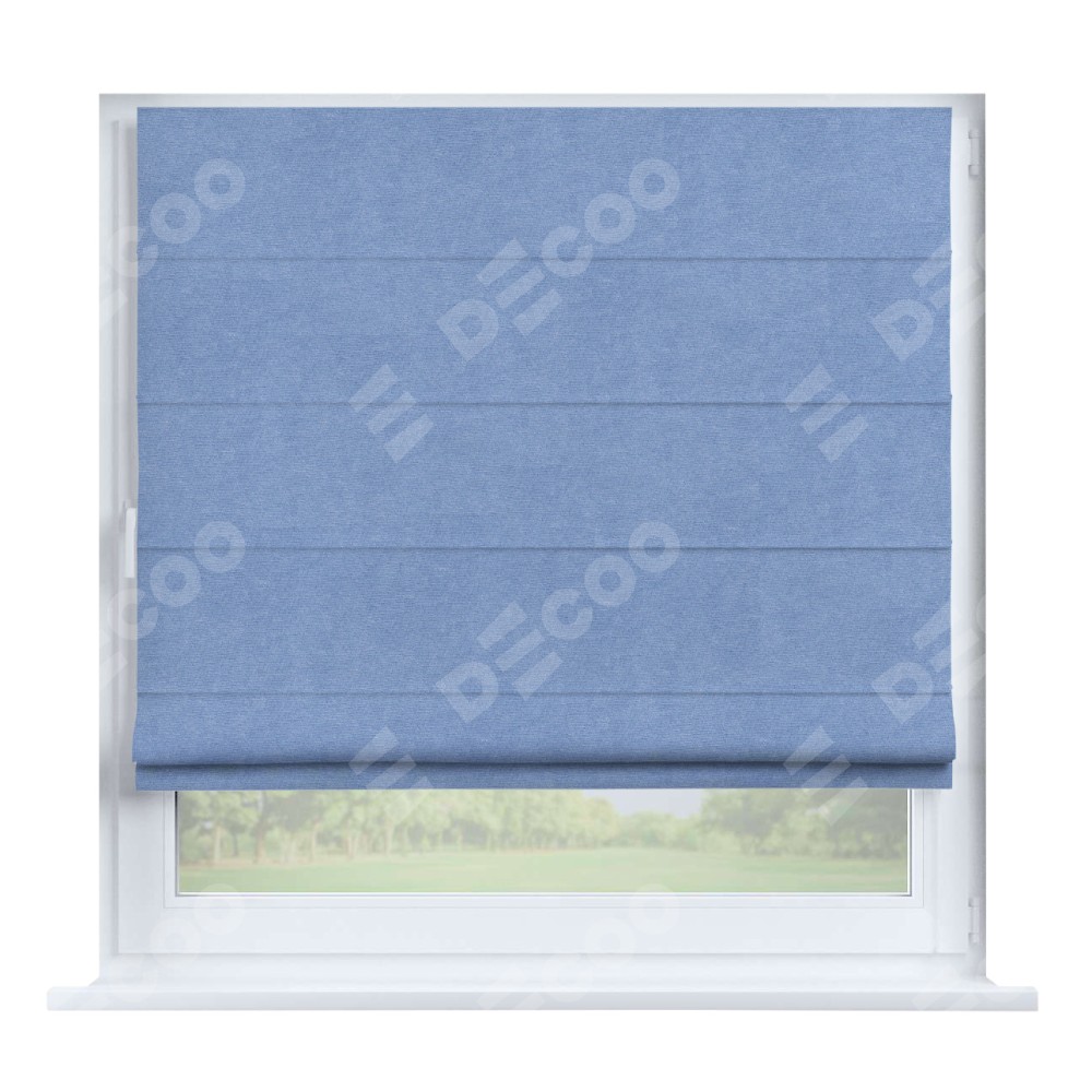 Римская штора производителя «Cortin», устанавливается на створку окна, пошита из ткани вельвет васильковый, артикул 33799. Штора шьётся по индивидуальным размерам, для данного типа римской шторы возможная ширина от 35 до 150 см., высота до 250 см.