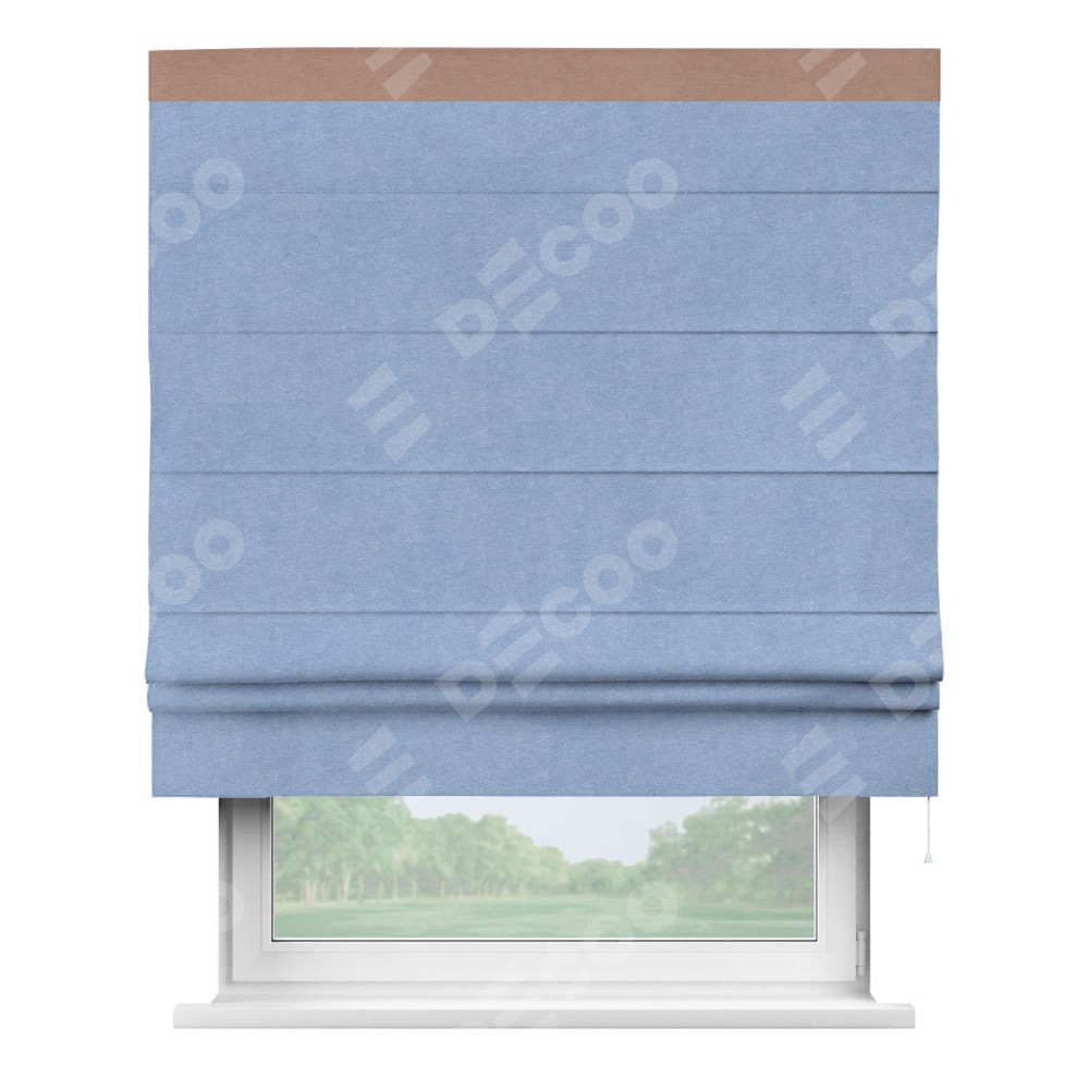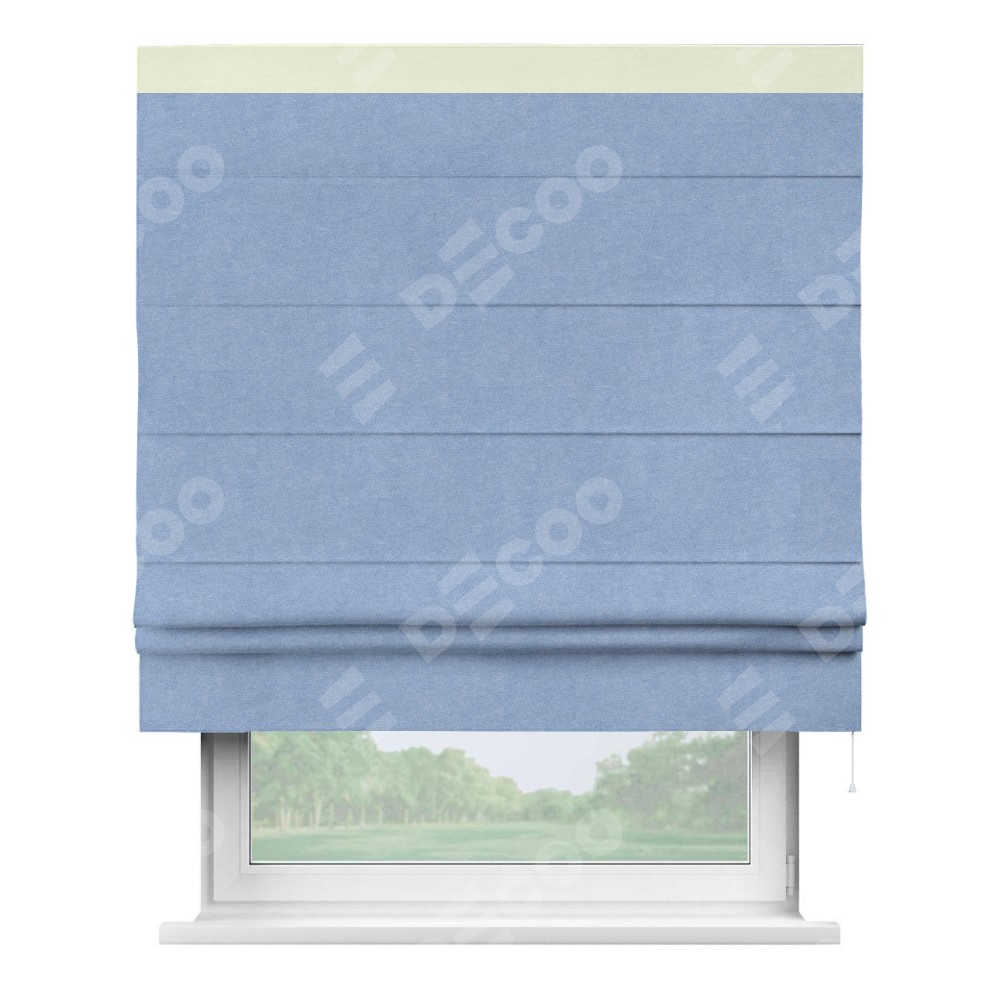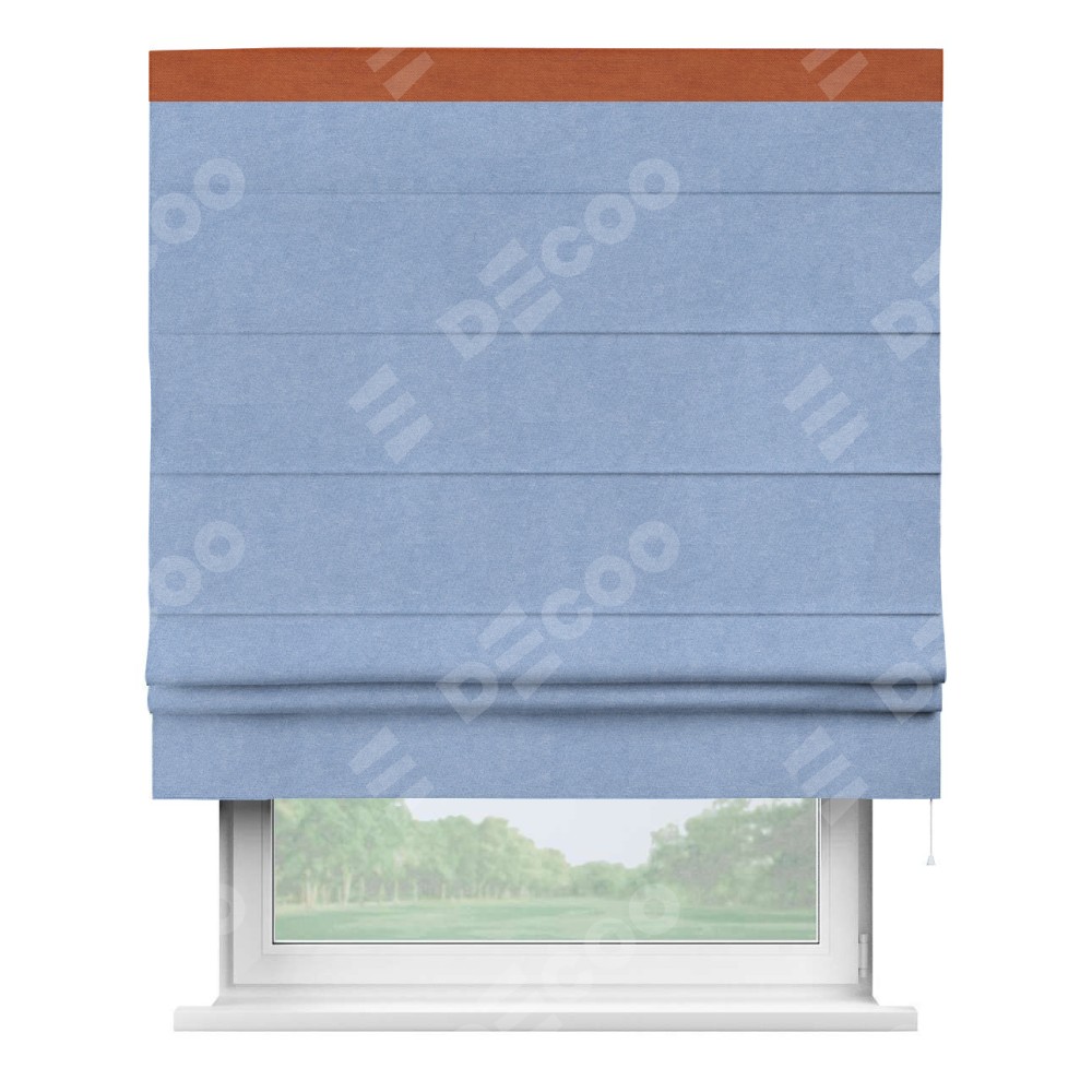 Римская штора «Кортин» для проема, вельвет васильковый с кантом Кинг