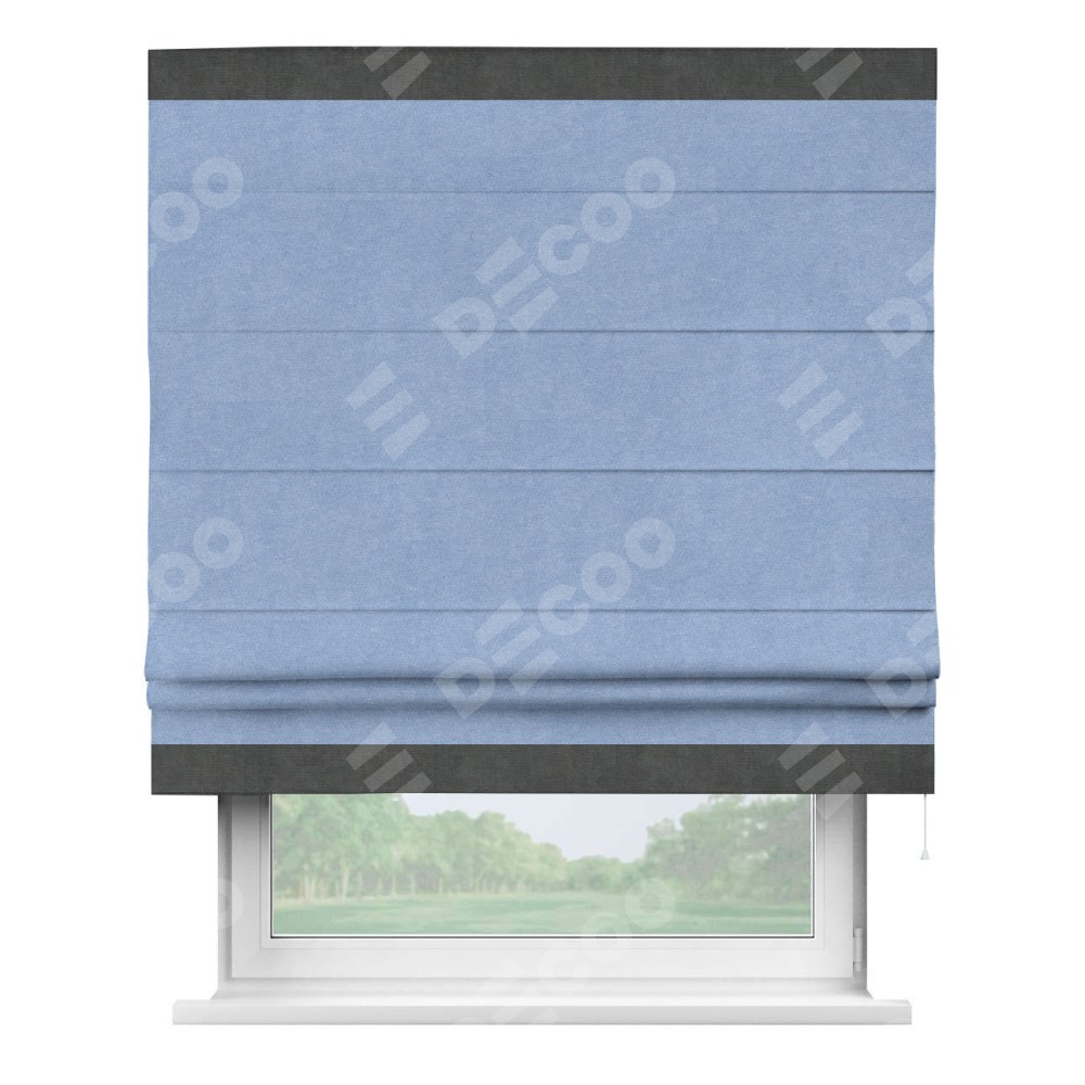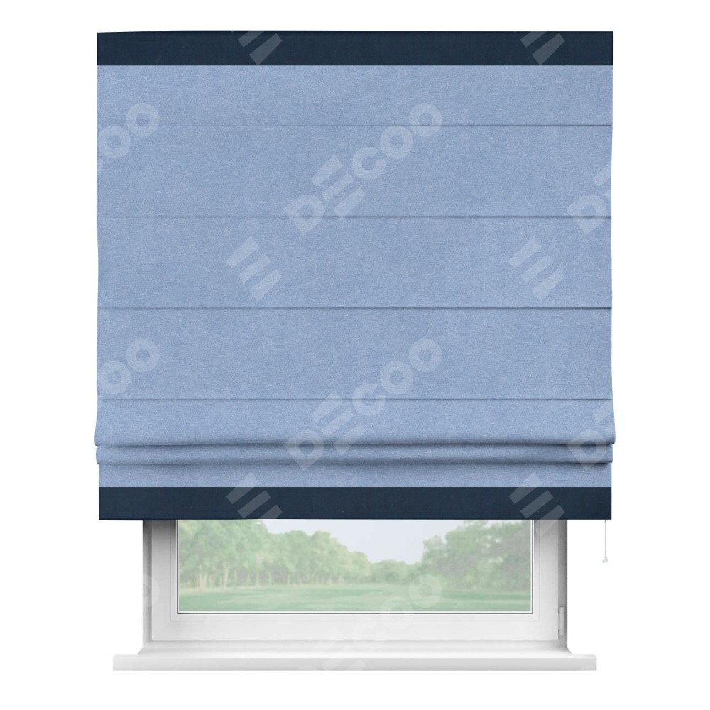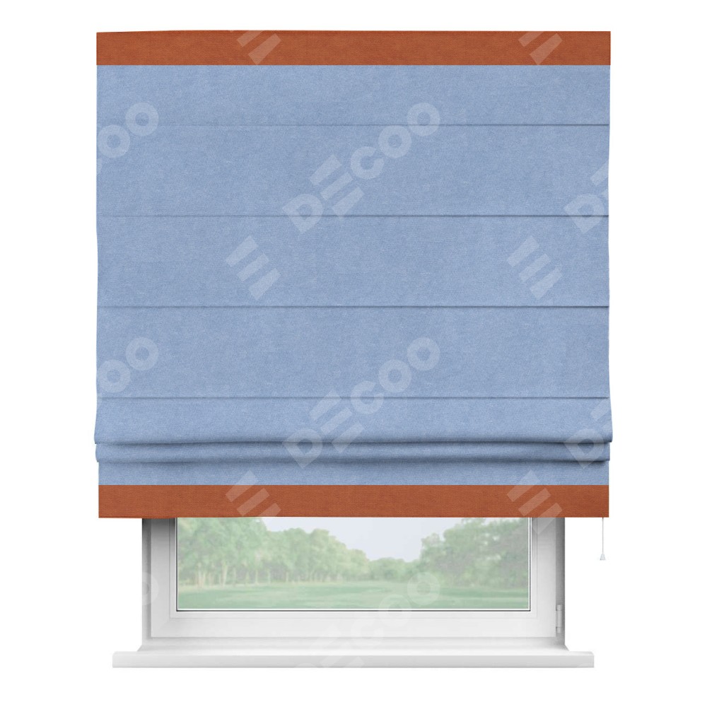 Римская штора «Кортин» для проема, вельвет васильковый с кантом Горизонт