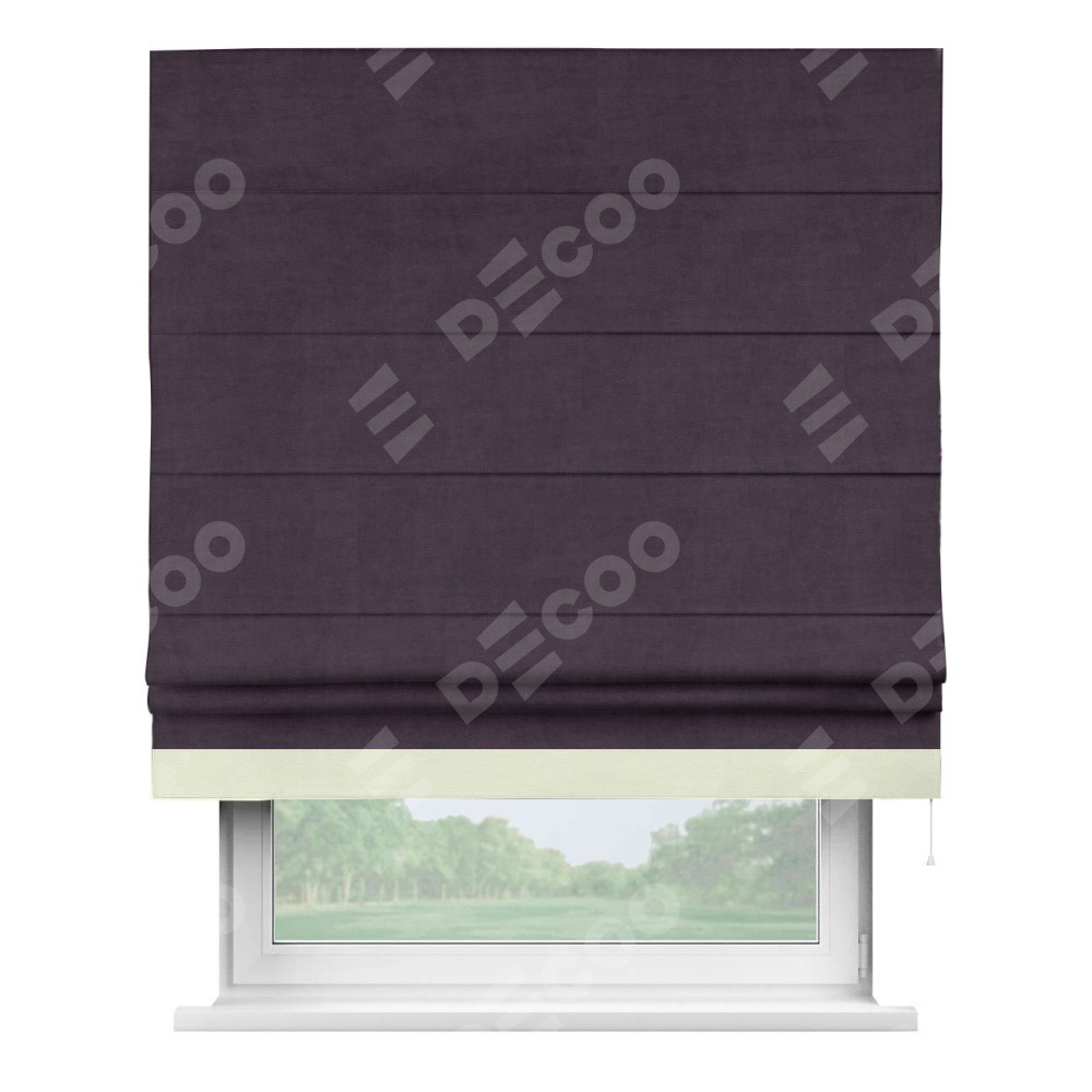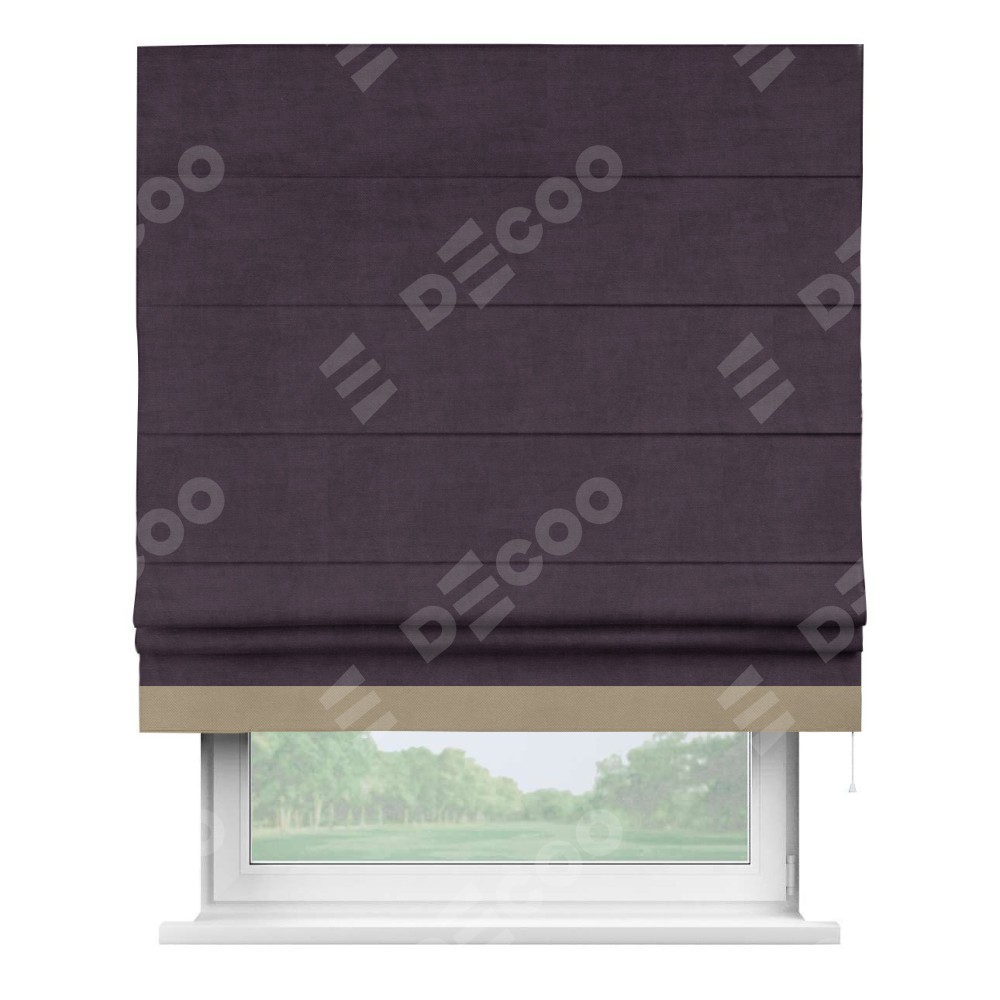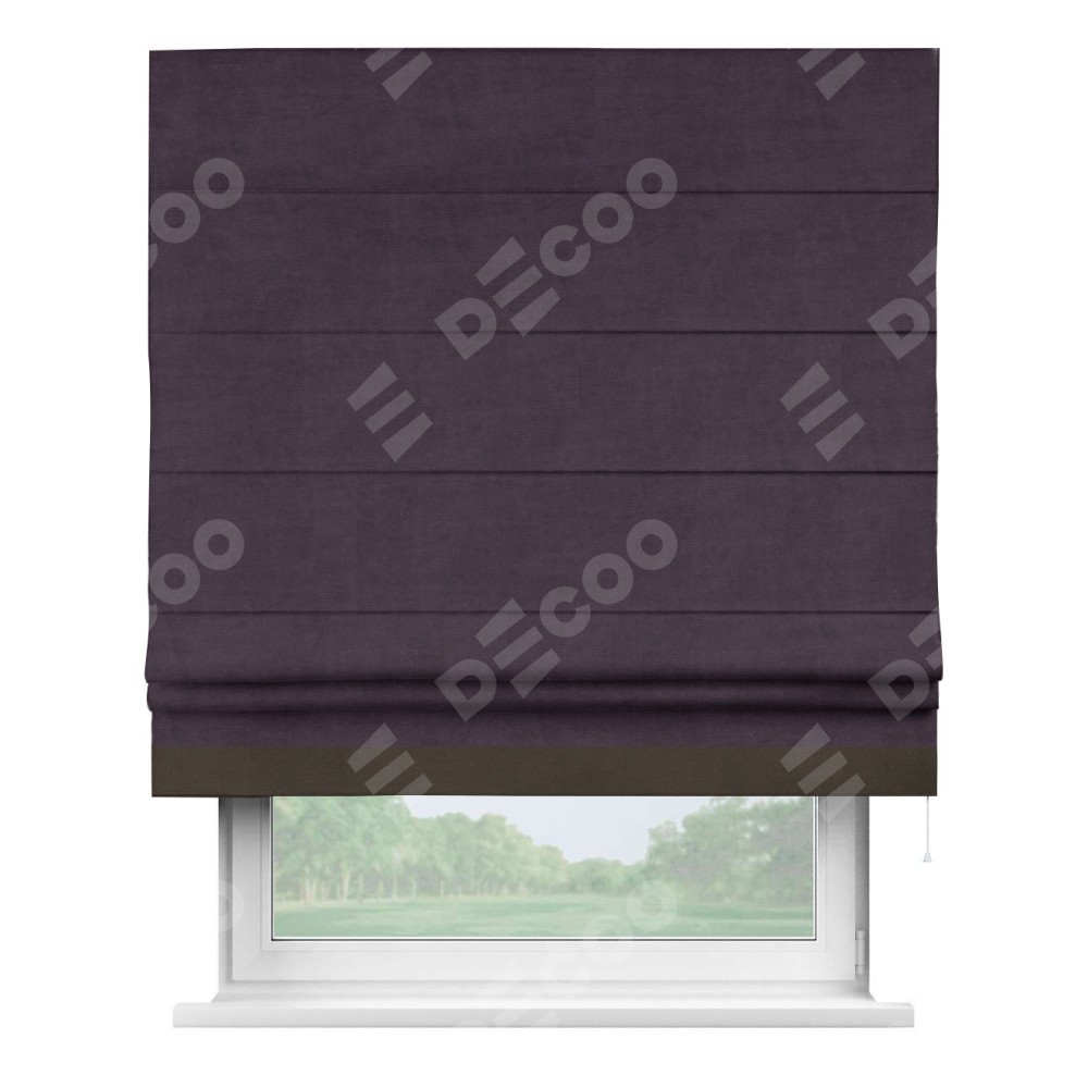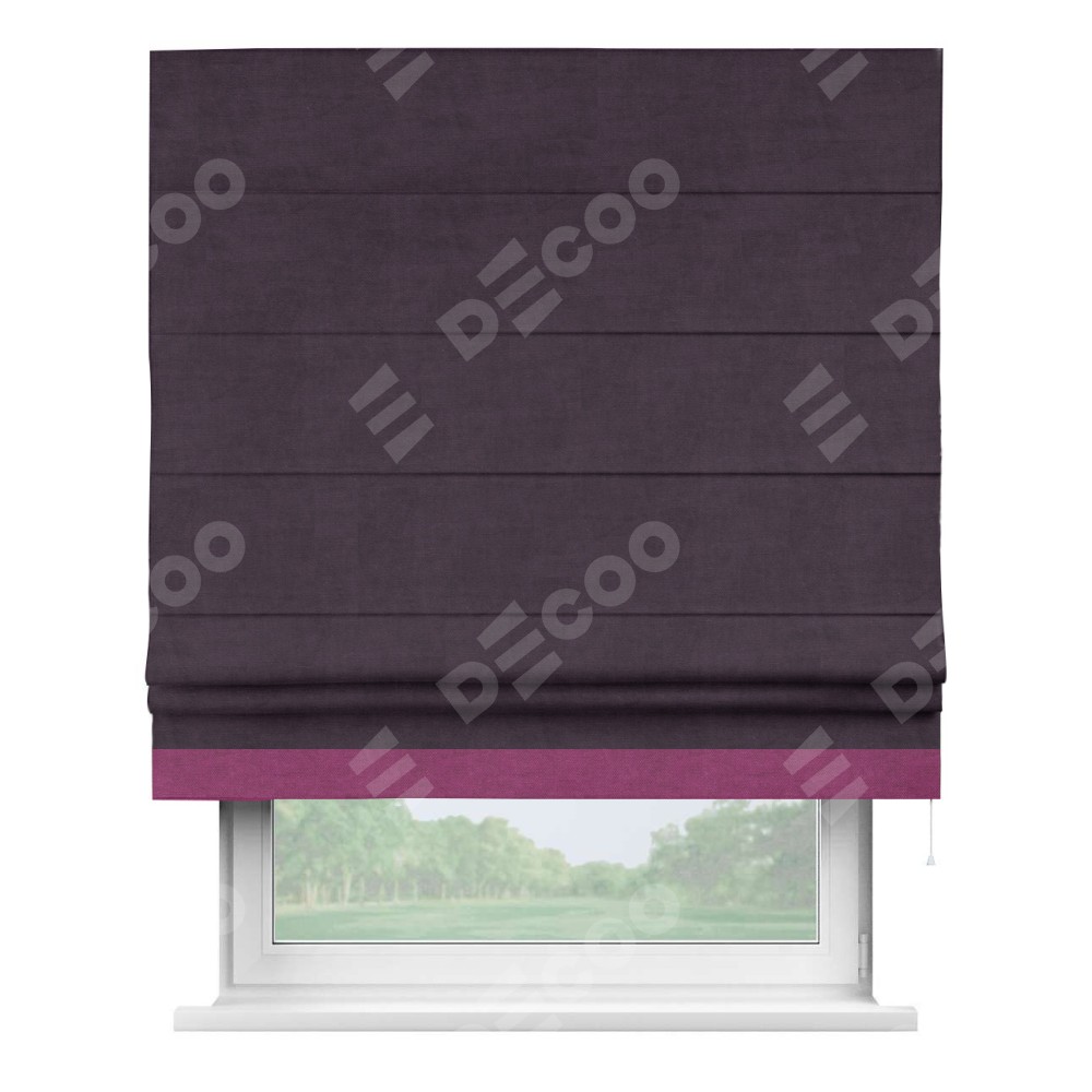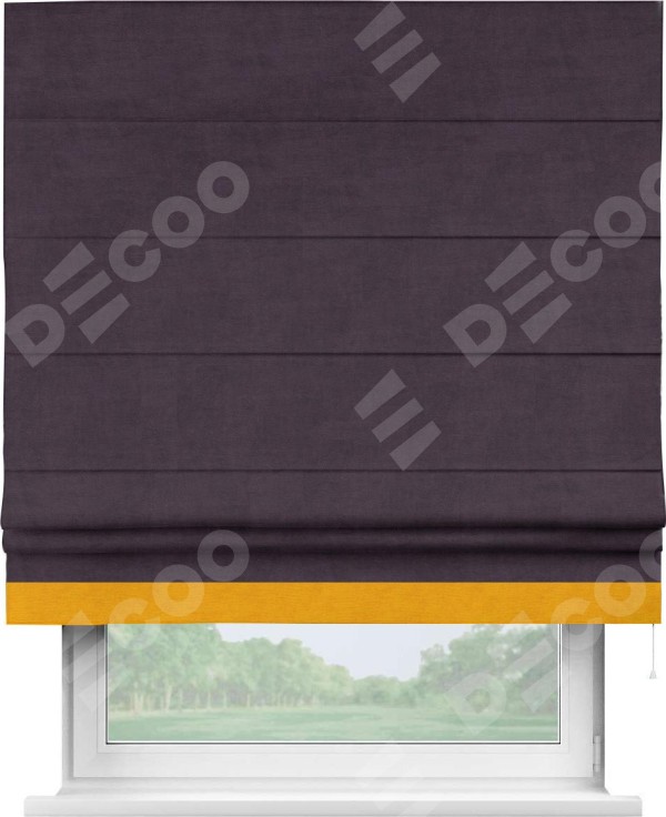 Римская штора «Кортин» для проема, вельвет тёмно-фиолетовый с кантом Джестер