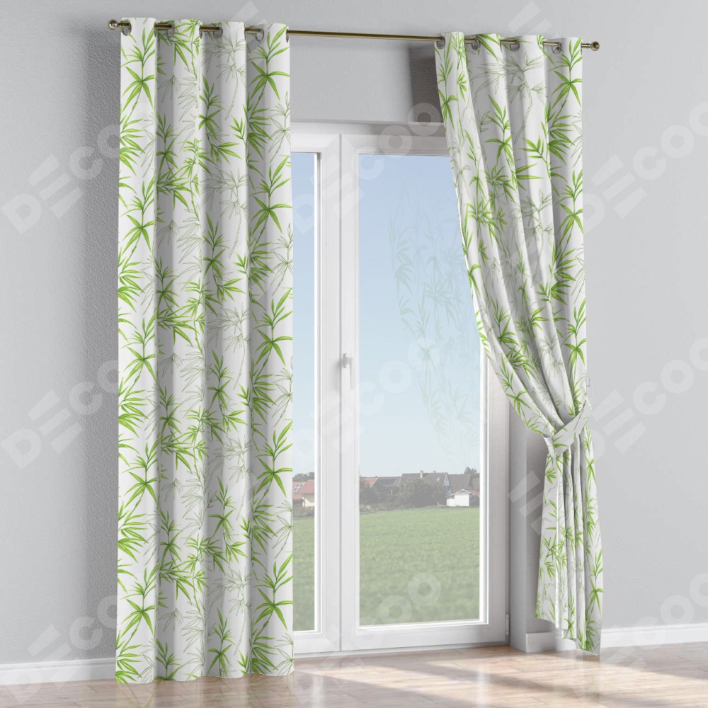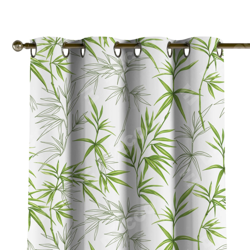 Комплект прямых штор, от производителя «Cortin», пошиты из ткани блэкаут с нанесением сублимационной печати «Зелёный бамбук». Данная модель пошита на люверсах, комплектуется на выбор круглым карнизом и подходит для монтажа на стену или потолок. Прямые шторы на люверсах шьются по стандарту с коэффициентом 1/2 (на 100 см. ширины проёма 200 см. ширины ткани), отличительным преимуществом данной модели является простой способ монтажа. Достаточно повесить ее на трубу и штора готова!
