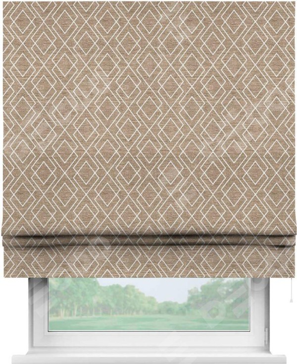 Классическая римская штора производителя «Cortin», пошита из ткани блэкаут с нанесением сублимационной печати «Кристальные грани». Имеет универсальный механизм и подходит для монтажа: на потолок, на стену и в нишу.