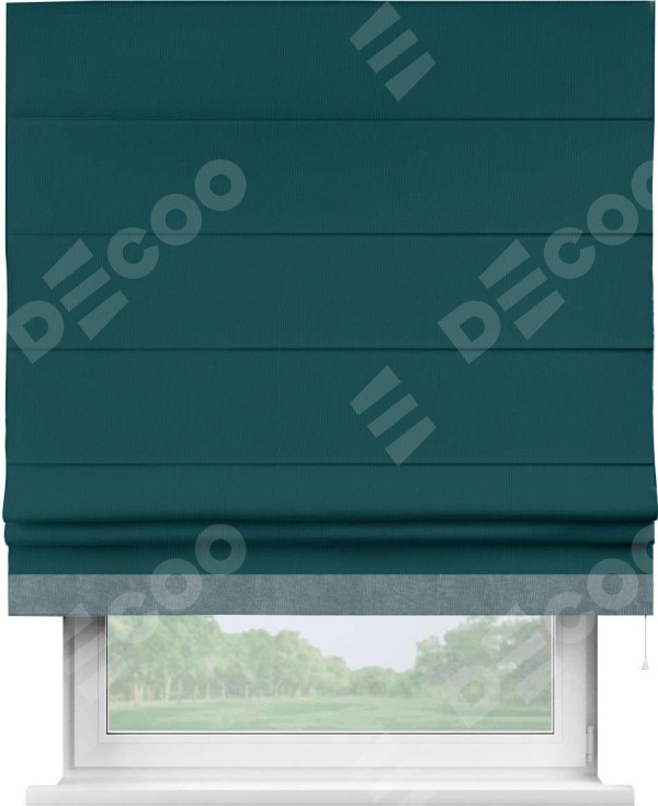 Римская штора «Кортин» для проема, канвас изумрудный, с кантом Джестер