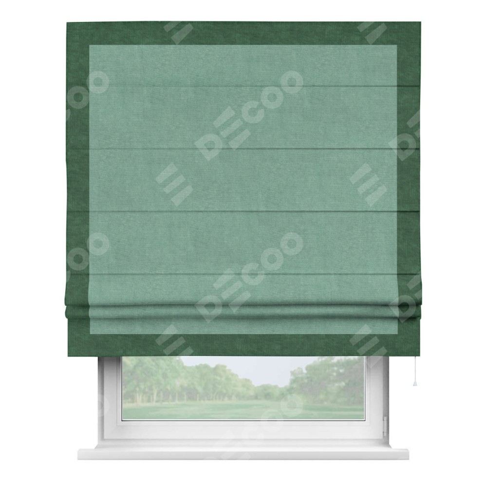 Римская штора «Кортин» для проема, канвас мятный, с кантом Чесс