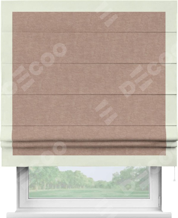 Римская штора «Кортин» для проема, канвас розовая пудра, с кантом Чесс