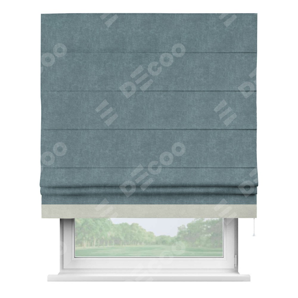 Римская штора «Кортин» для проема, канвас серо-голубой, с кантом Джестер