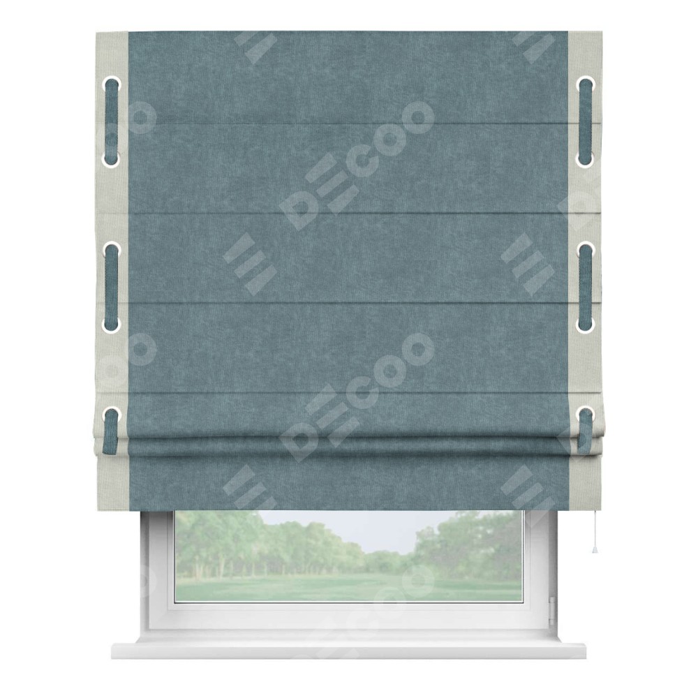Римская штора «Кортин» для проема, канвас серо-голубой, с кантом Стрим Дуо (люверсы с пояском)