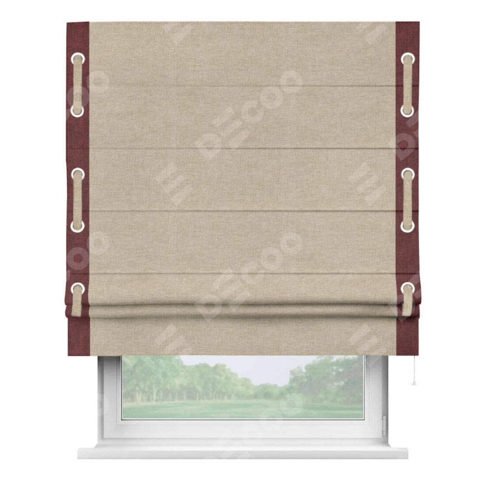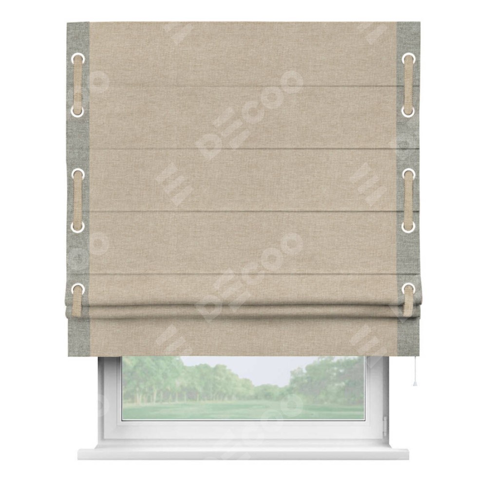 Римская штора «Кортин» с кантом Стрим Дуо (люверсы с пояском), для проема, ткань лён кашемир бежевый
