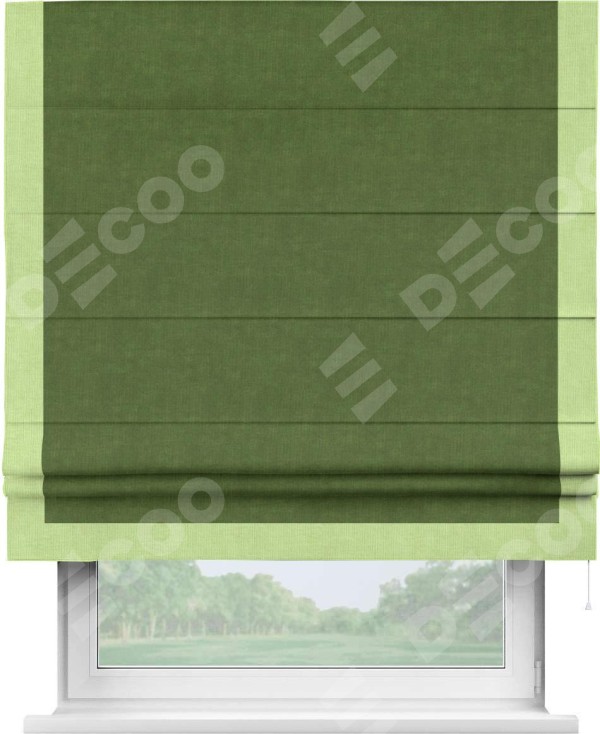 Римская штора «Кортин» для проема, канвас трава, с кантом Виктория
