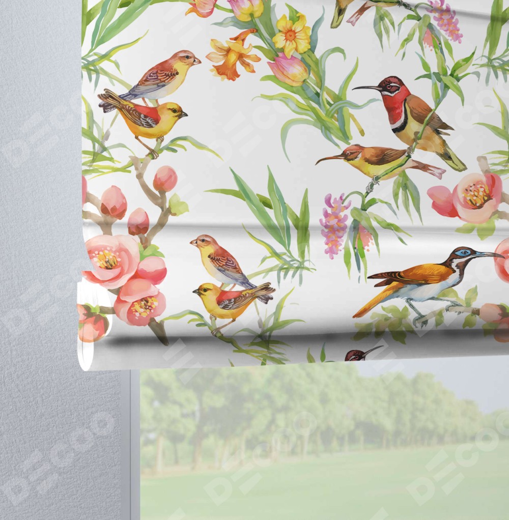 Римская штора на петлях «Певчие птички»