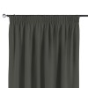 Комплект прямых штор, от производителя «Cortin», пошиты из ткани блэкаут однотонный тёмно-серый, артикул ткани 91570. С изнаночной стороны в верхней части штор пристрачивается шторная лента с декоративными складками «Карандаш». Для создания элегантных складок прямые шторы шьются по стандарту с коэффициентом 1:2 (на 100 см. ширины проёма 200 см. ширины ткани).