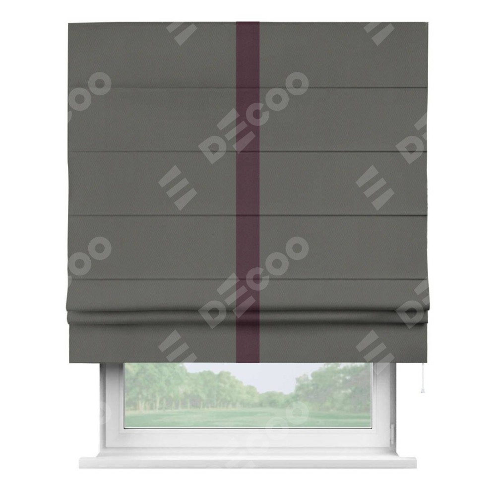 Римская штора «Кортин» для проема, блэкаут однотонный тёмно-серый с кантом Хайвэй