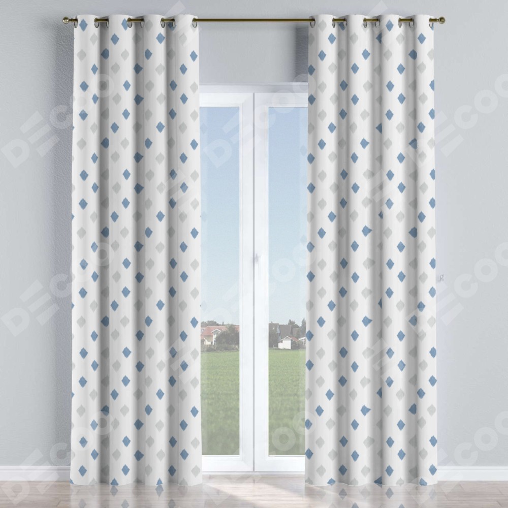 Комплект прямых штор, от производителя «Cortin», пошиты из ткани блэкаут с нанесением сублимационной печати «Икат ромбики». Данная модель пошита на люверсах, комплектуется на выбор круглым карнизом и подходит для монтажа на стену или потолок. Прямые шторы на люверсах шьются по стандарту с коэффициентом 1/2 (на 100 см. ширины проёма 200 см. ширины ткани), отличительным преимуществом данной модели является простой способ монтажа. Достаточно повесить ее на трубу и штора готова!