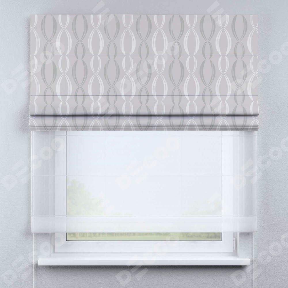 Двойная римская штора «День-ночь» от производителя Cortin предназначена для использования в проёмах. Эта штора уникальна тем, что состоит из двух полотен. На лицевой стороне находится блэкаут с нанесением сублимационной печати «Омега», обеспечивающий эффективное затемнение. В комплект также входит вторая ткань — легкий белый тюль (артикул: V-01), который добавляет изящества и легкости оформлению окна. Кроме того, доступны и другие разновидности ткани тюль, выбор которых доступен по  ссылке .