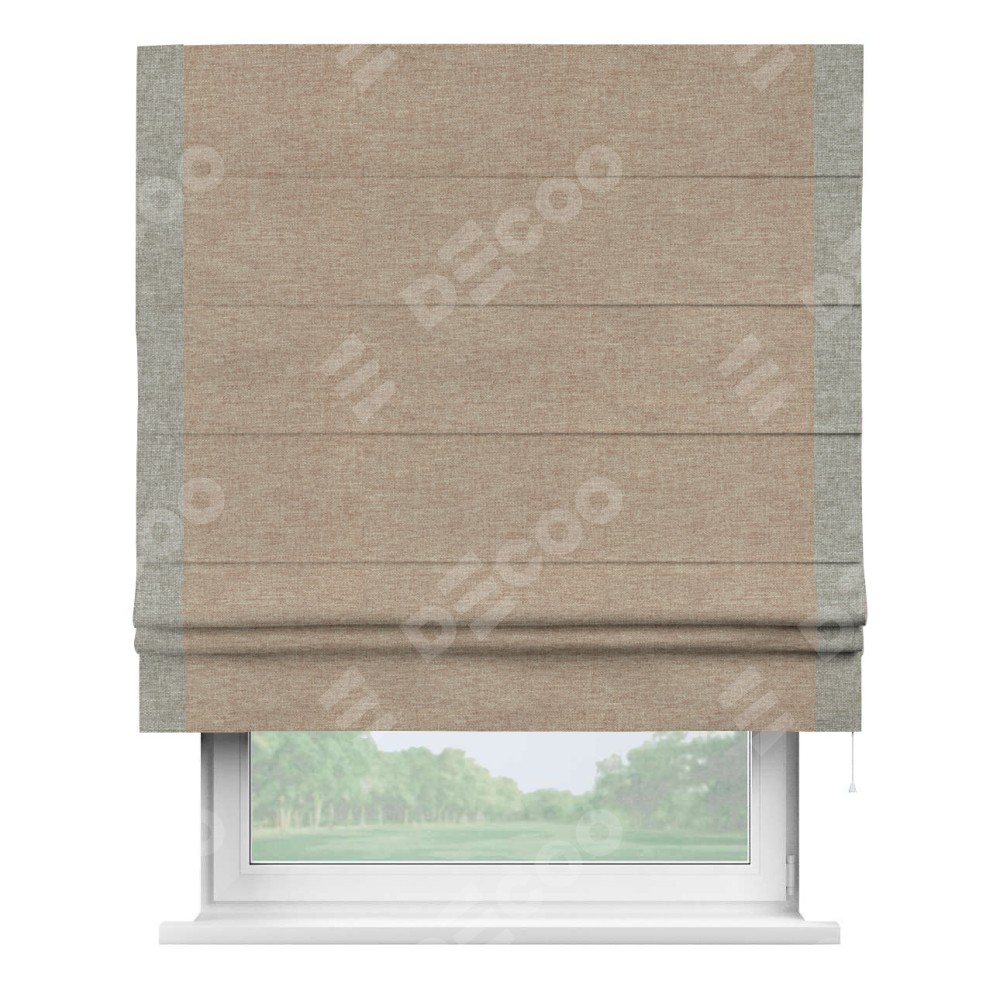 Римская штора «Кортин» с кантом Стрим Дуо, для проема, ткань лён кашемир коричневый
