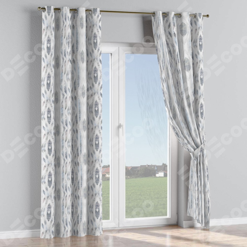 Длина карниза равна ширине окна плюс 30 — 50 см. При расчете длины штанги наконечники не учитываются. Для определения высоты штор измерьте расстояние от верхнего края карниза до пола и отнимите 1 см. Прибавьте 4 см  (гребешок над люверсом) Это габаритный размер вашего изделия.