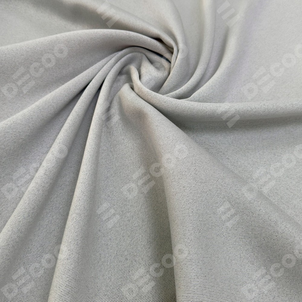 Комплект прямых штор, от производителя «Cortin», пошиты из ткани твид блэкаут светло-серый, артикул ткани 90936. С изнаночной стороны в верхней части штор пристрачивается шторная лента с декоративными складками «Кустик». Для создания элегантных складок прямые шторы шьются по стандарту с коэффициентом 1:2 (на 100 см. ширины проёма 200 см. ширины ткани).