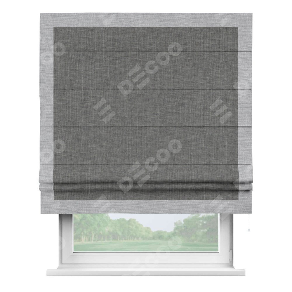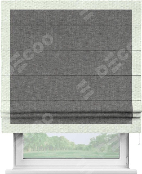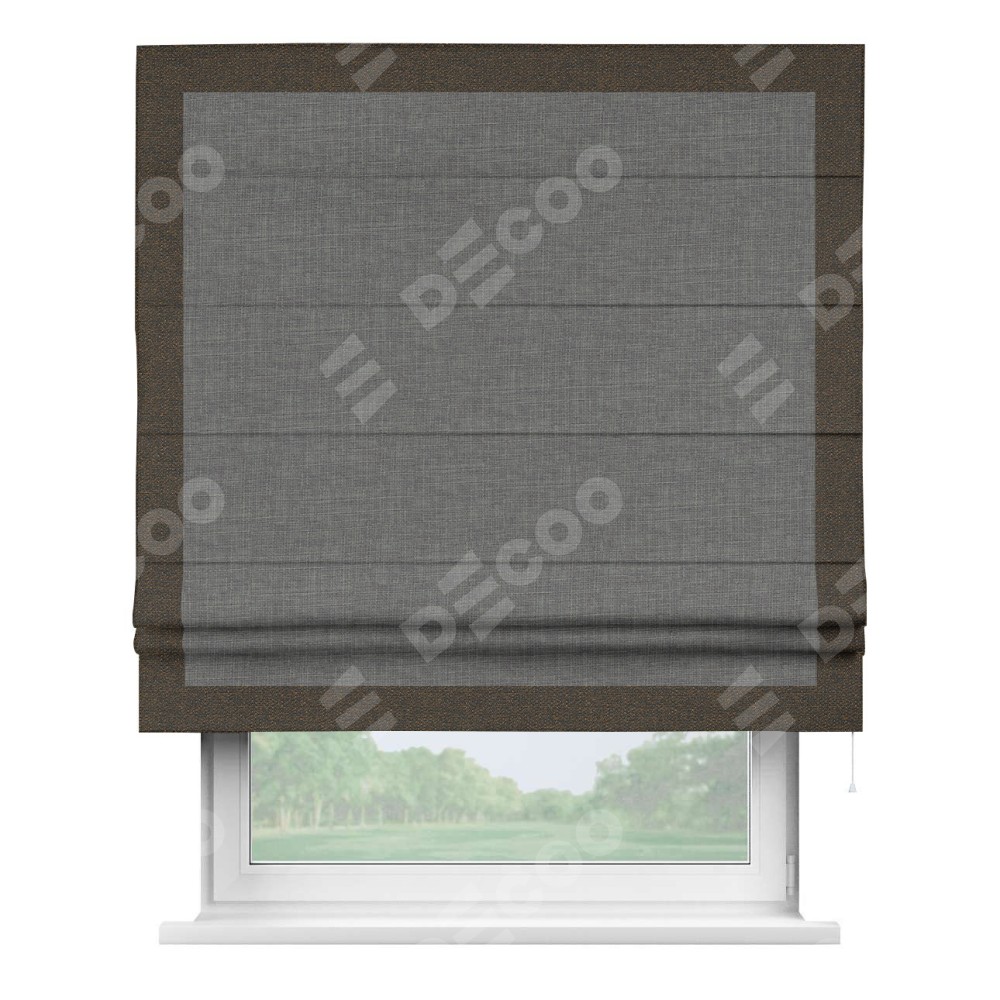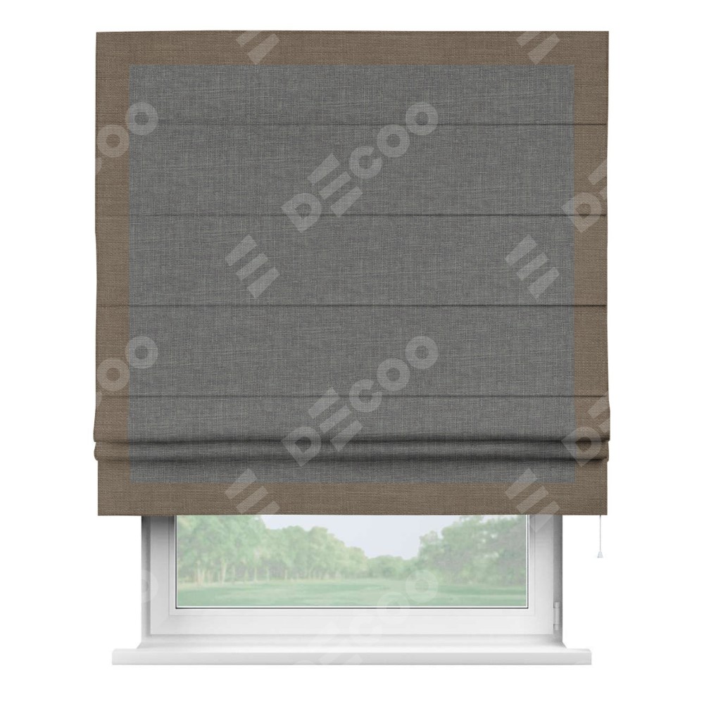 Римская штора «Кортин» с кантом Чесс, для проема, лён тёмно-серый