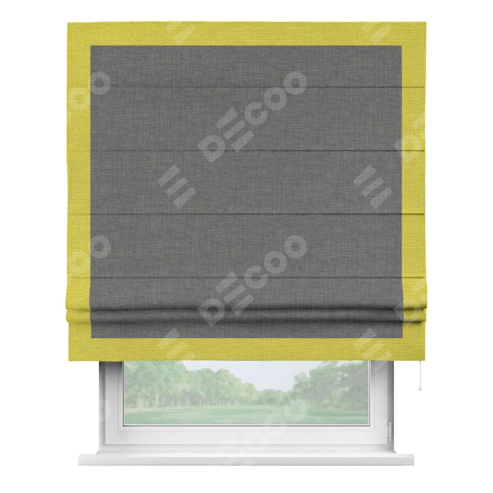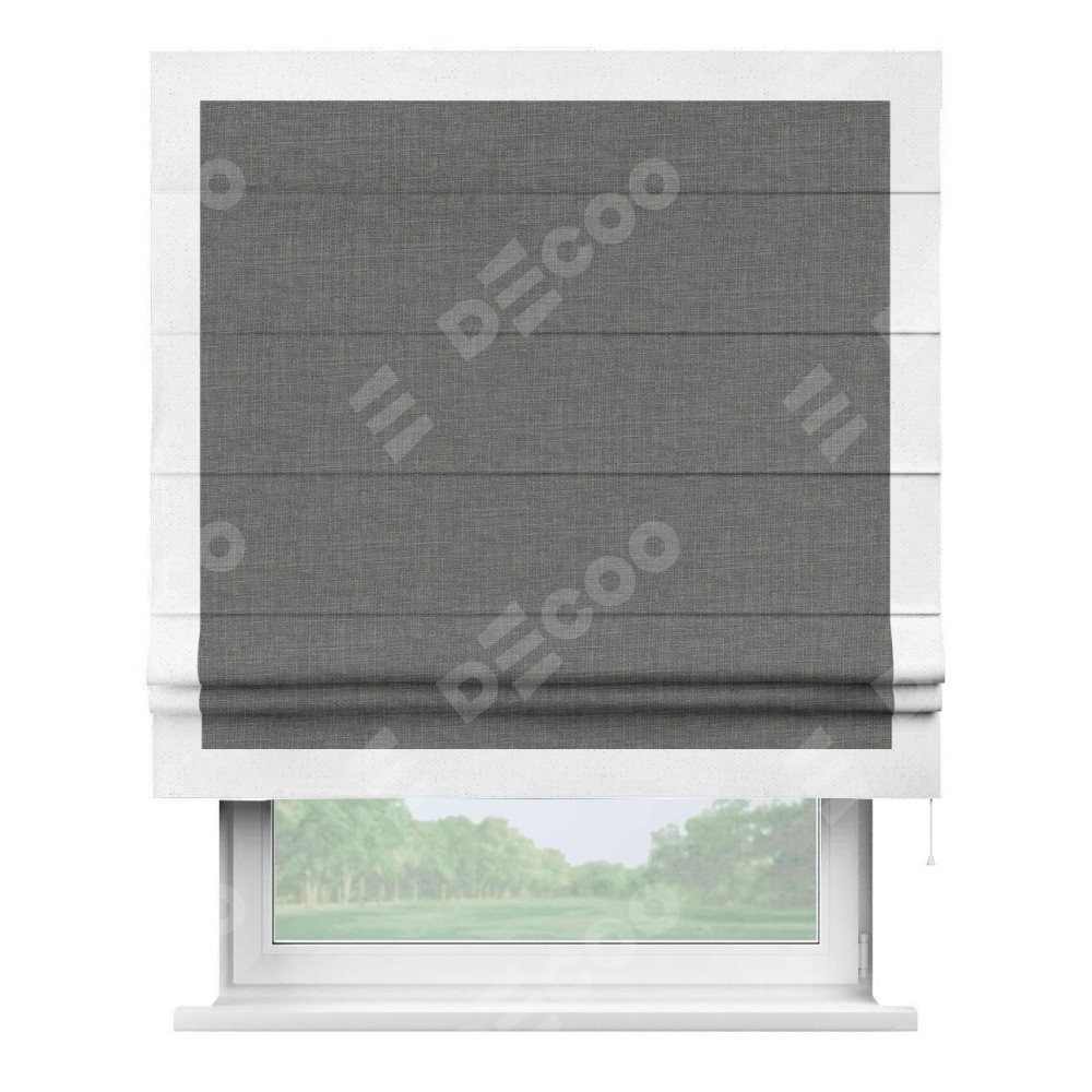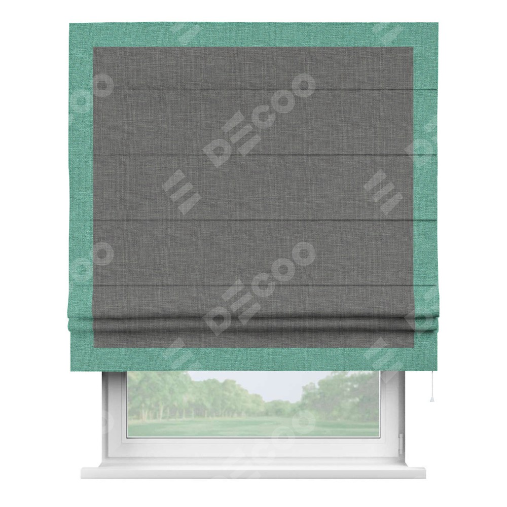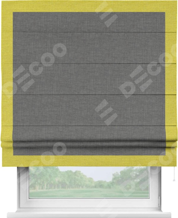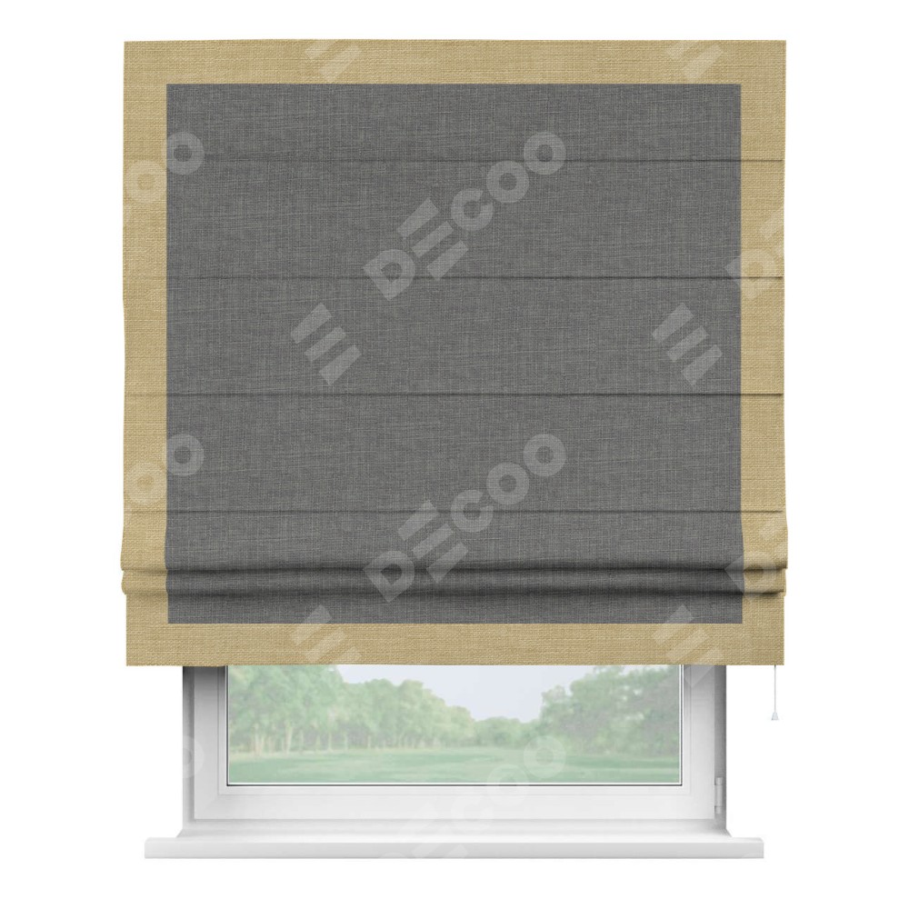 Римская штора «Кортин» с кантом Чесс, для проема, лён тёмно-серый
