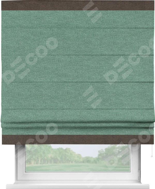 Римская штора «Кортин» с кантом Горизонт, для проема, твид блэкаут бирюзовый
