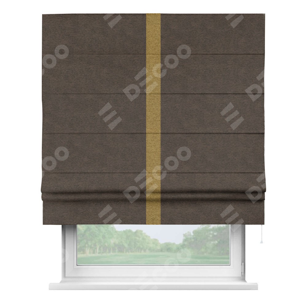 Римская штора «Кортин» для проема, твид блэкаут тёмно-коричневый, с кантом Хайвэй