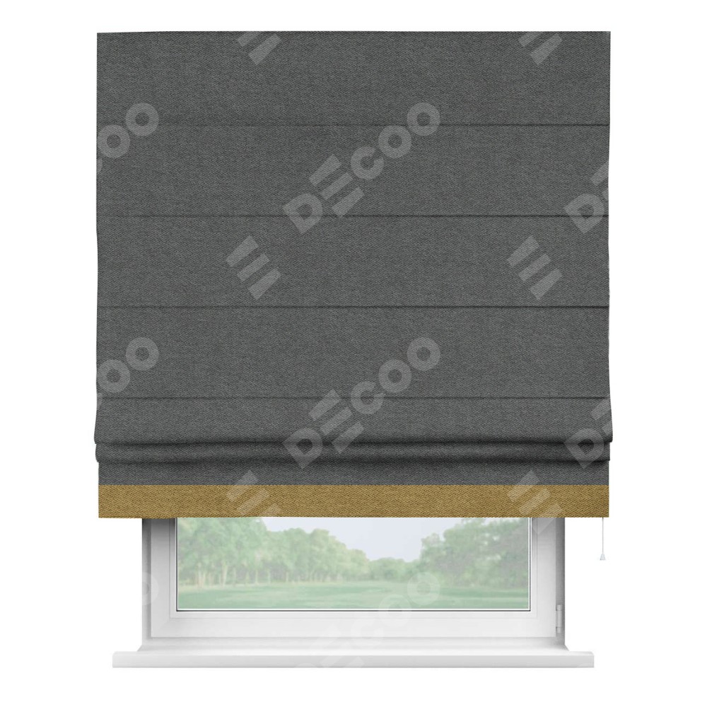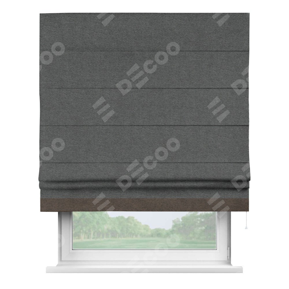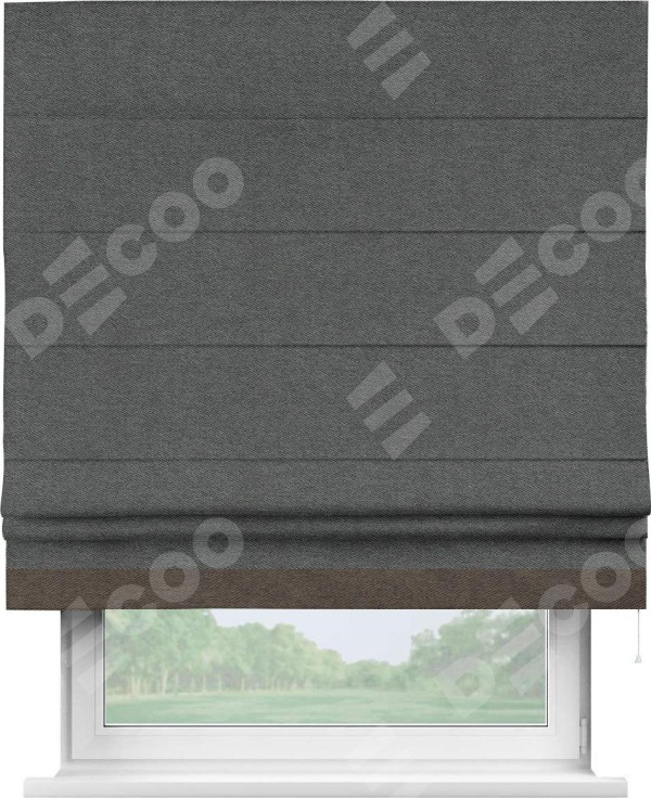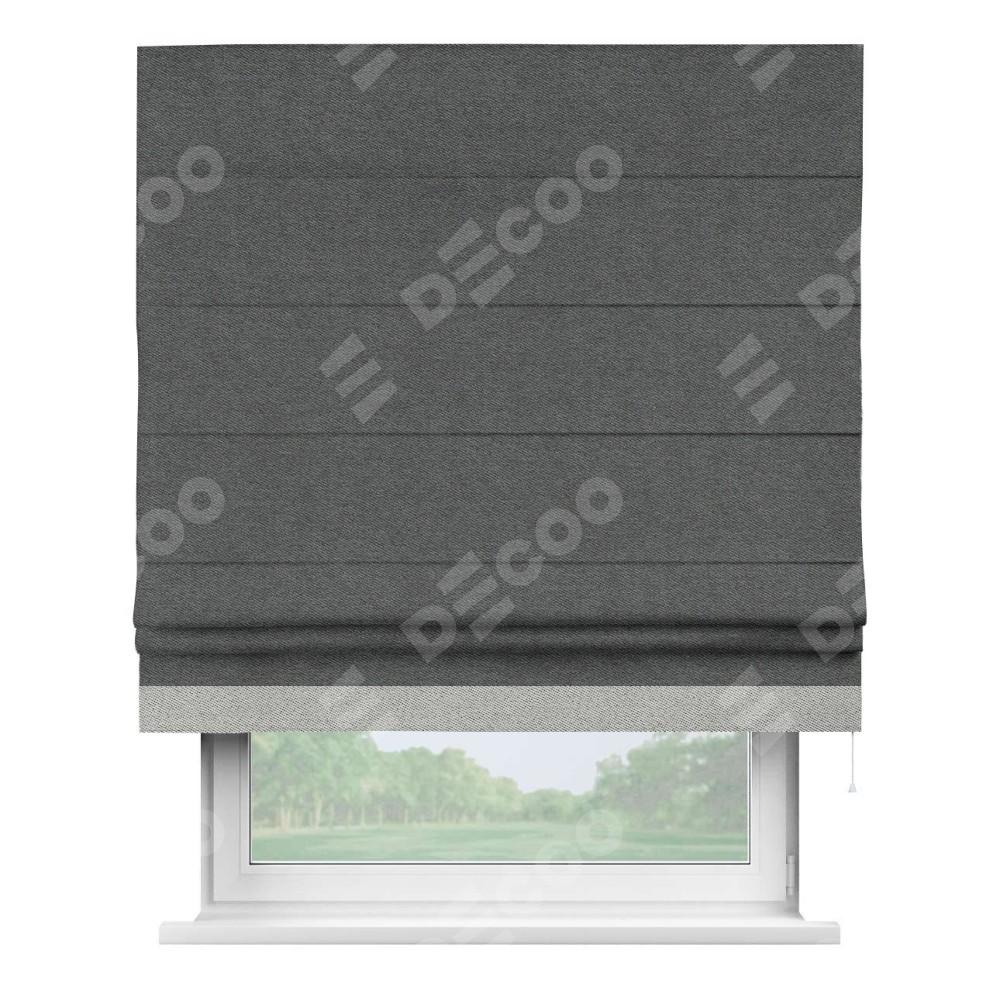 Римская штора «Кортин» для проема, твид блэкаут тёмно-серый, с кантом Джестер