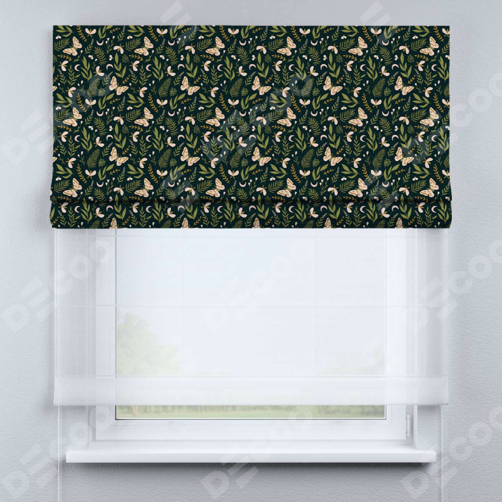 Двойная римская штора «День-ночь» от производителя Cortin предназначена для использования в проёмах. Эта штора уникальна тем, что состоит из двух полотен. На лицевой стороне находится блэкаут с нанесением сублимационной печати «Летняя ночь», обеспечивающий эффективное затемнение. В комплект также входит вторая ткань — легкий белый тюль (артикул: V-01), который добавляет изящества и легкости оформлению окна. Кроме того, доступны и другие разновидности ткани тюль, выбор которых доступен по ссылке .
