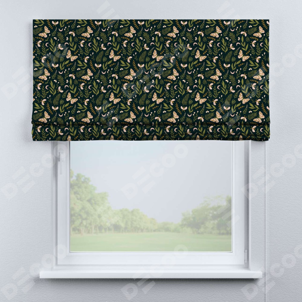 Классическая римская штора производителя «Cortin», пошита из ткани блэкаут с нанесением сублимационной печати «Летняя ночь». Имеет универсальный механизм и подходит для монтажа: на потолок, на стену и в нишу.