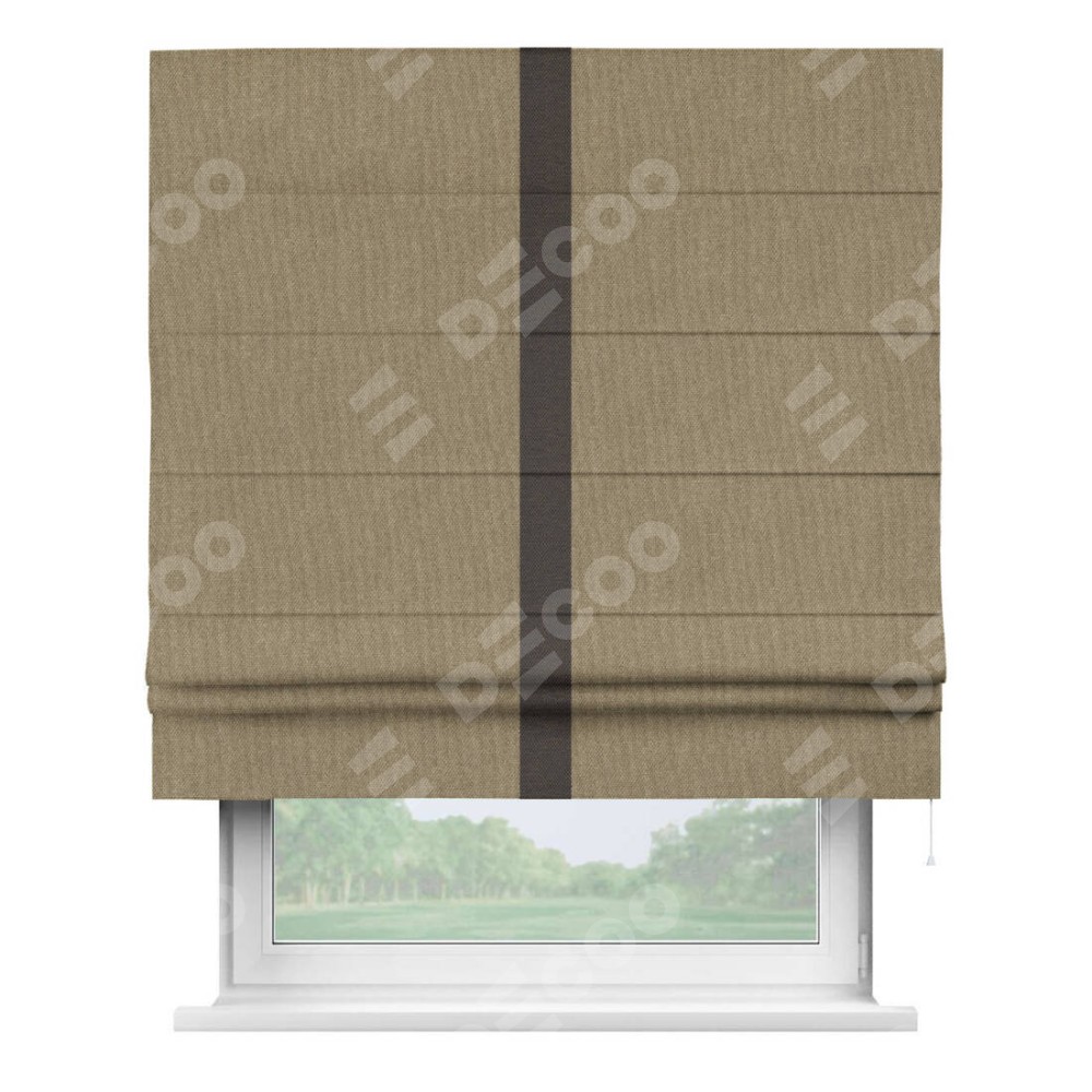 Римская штора «Кортин» для проема, лён димаут тёмно-бежевый с кантом Хайвэй